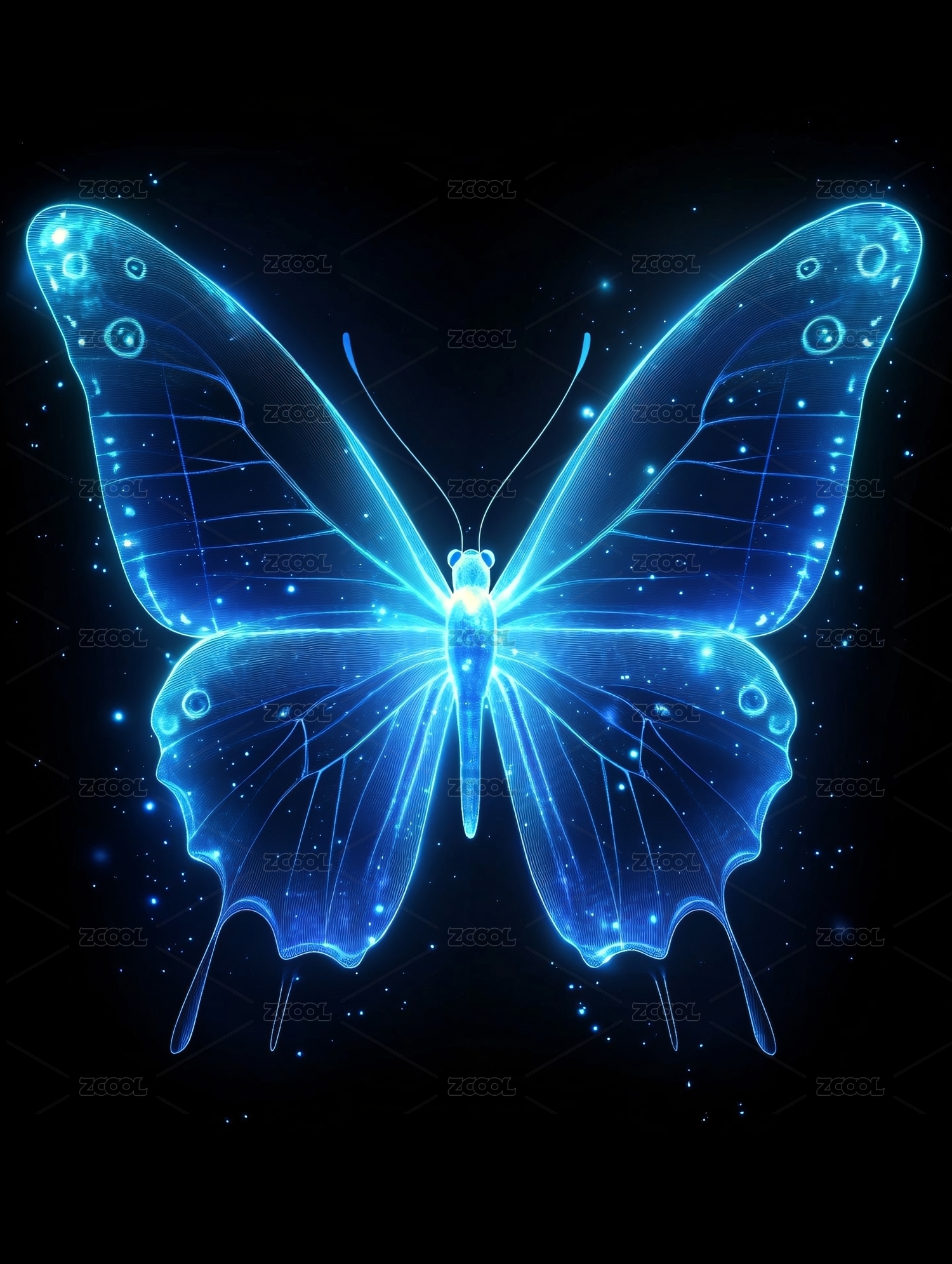 蓝色科技风梦幻发光蝴蝶