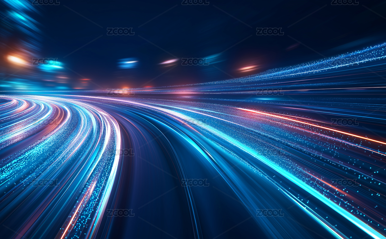 抽象, 科技, 光线, 蓝色, 未来,数据, 光纤, 传输, 网络, 速度