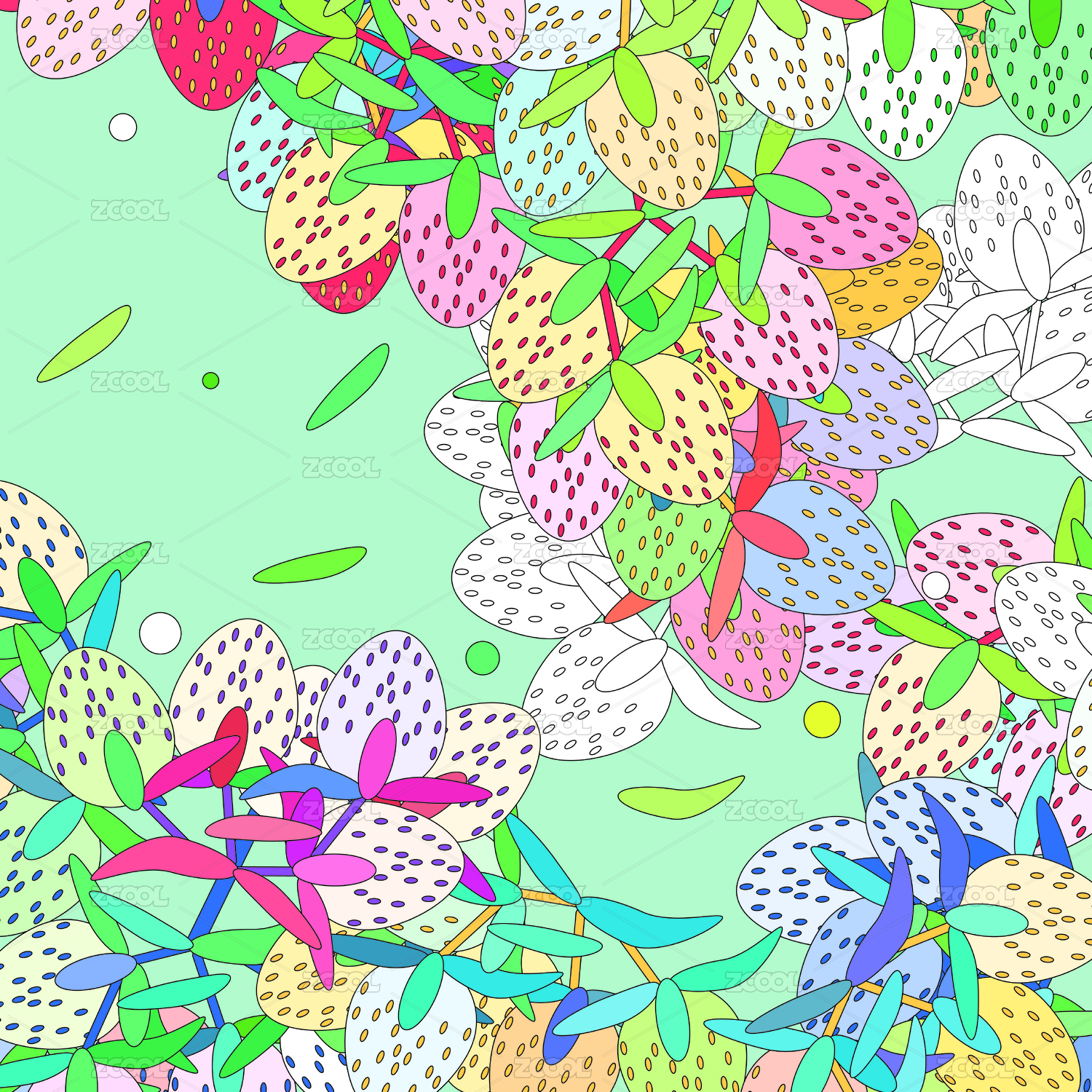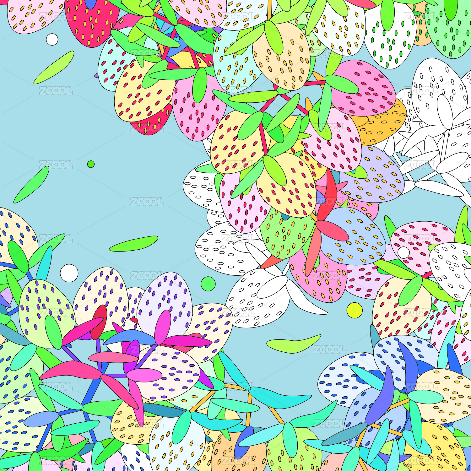 草莓,荧光,梦幻,意境,草莓藤,马卡龙色,莫兰迪色,叶子