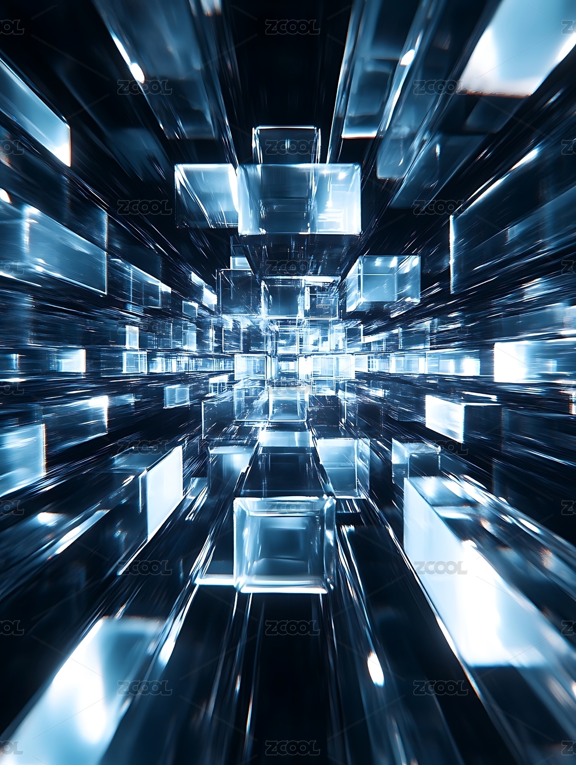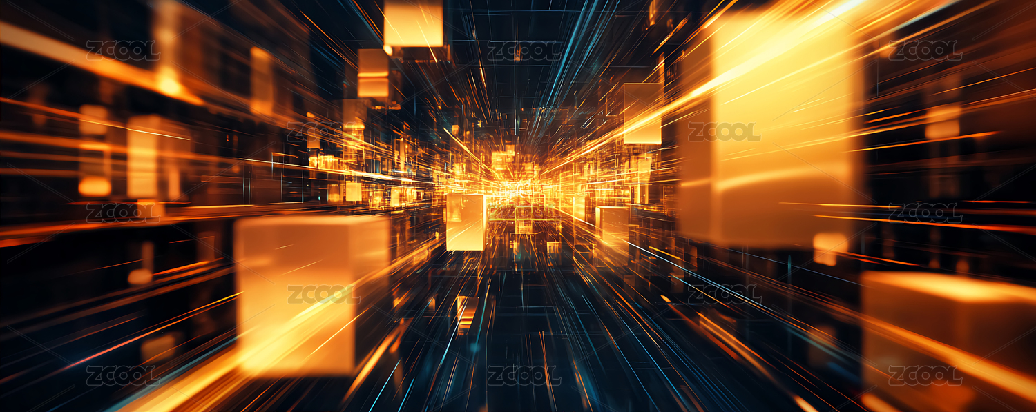 蓝色发光方块和光线,数字科技未来概念背景