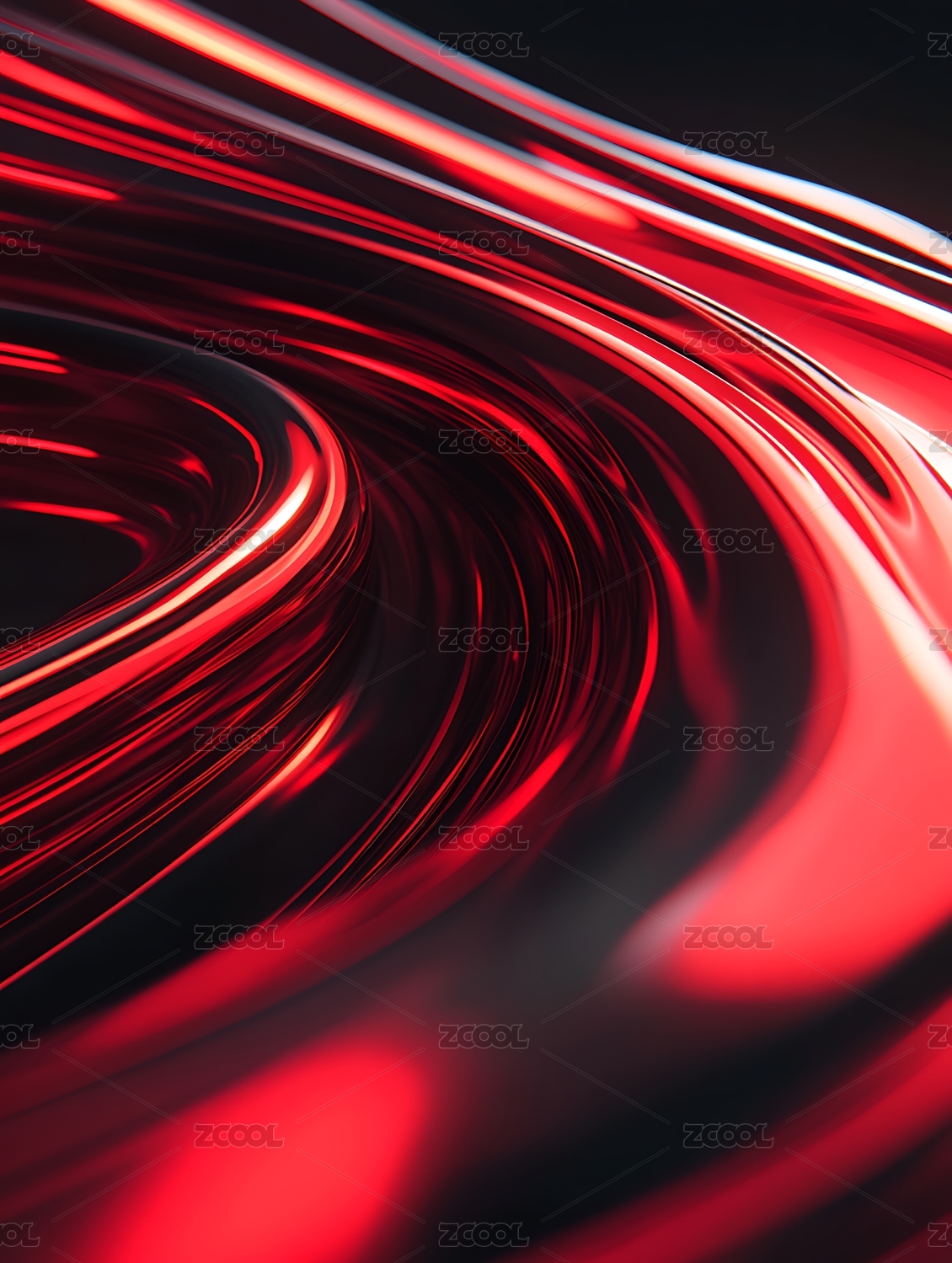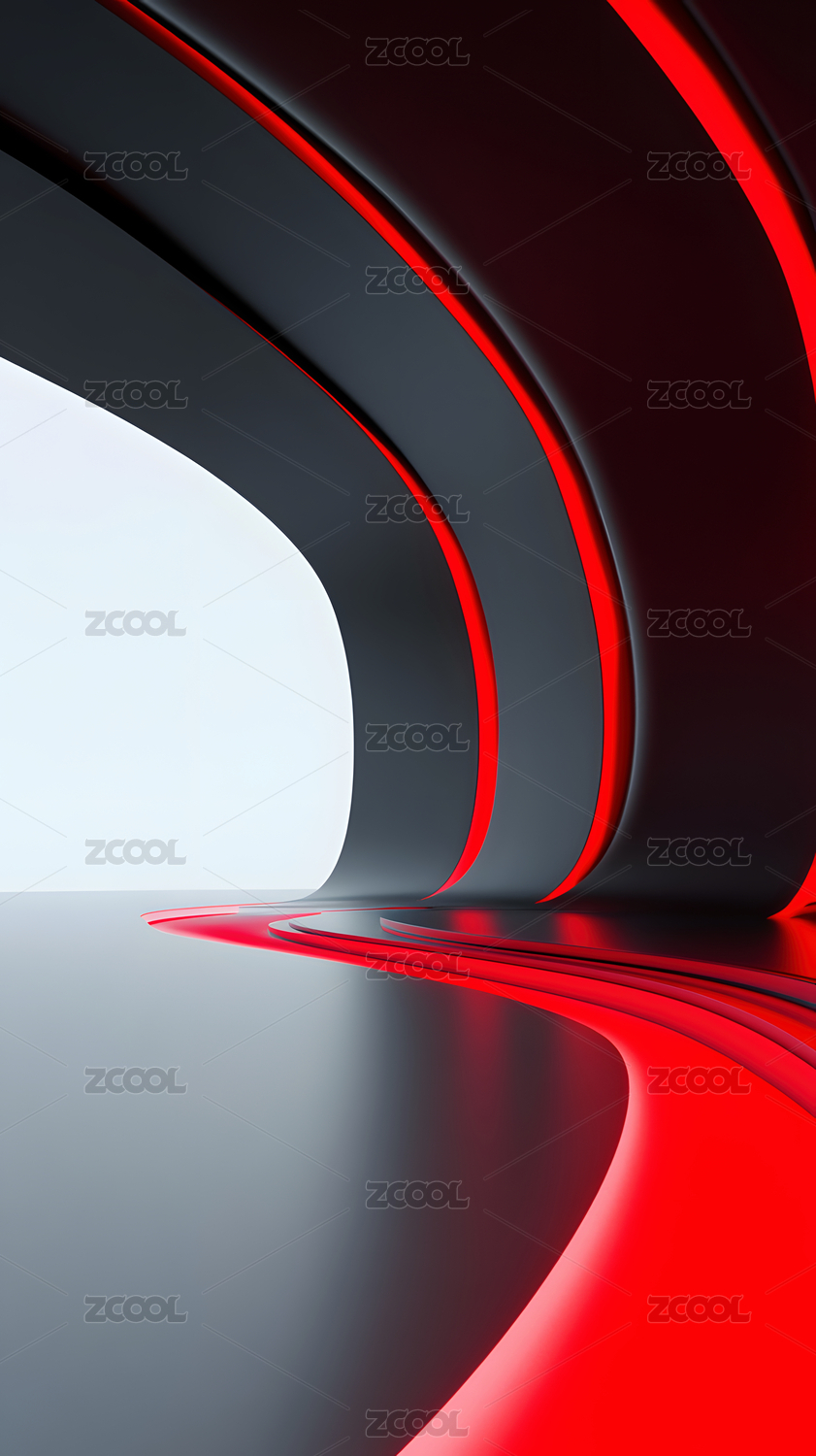 红色曲线与光影交织的抽象艺术