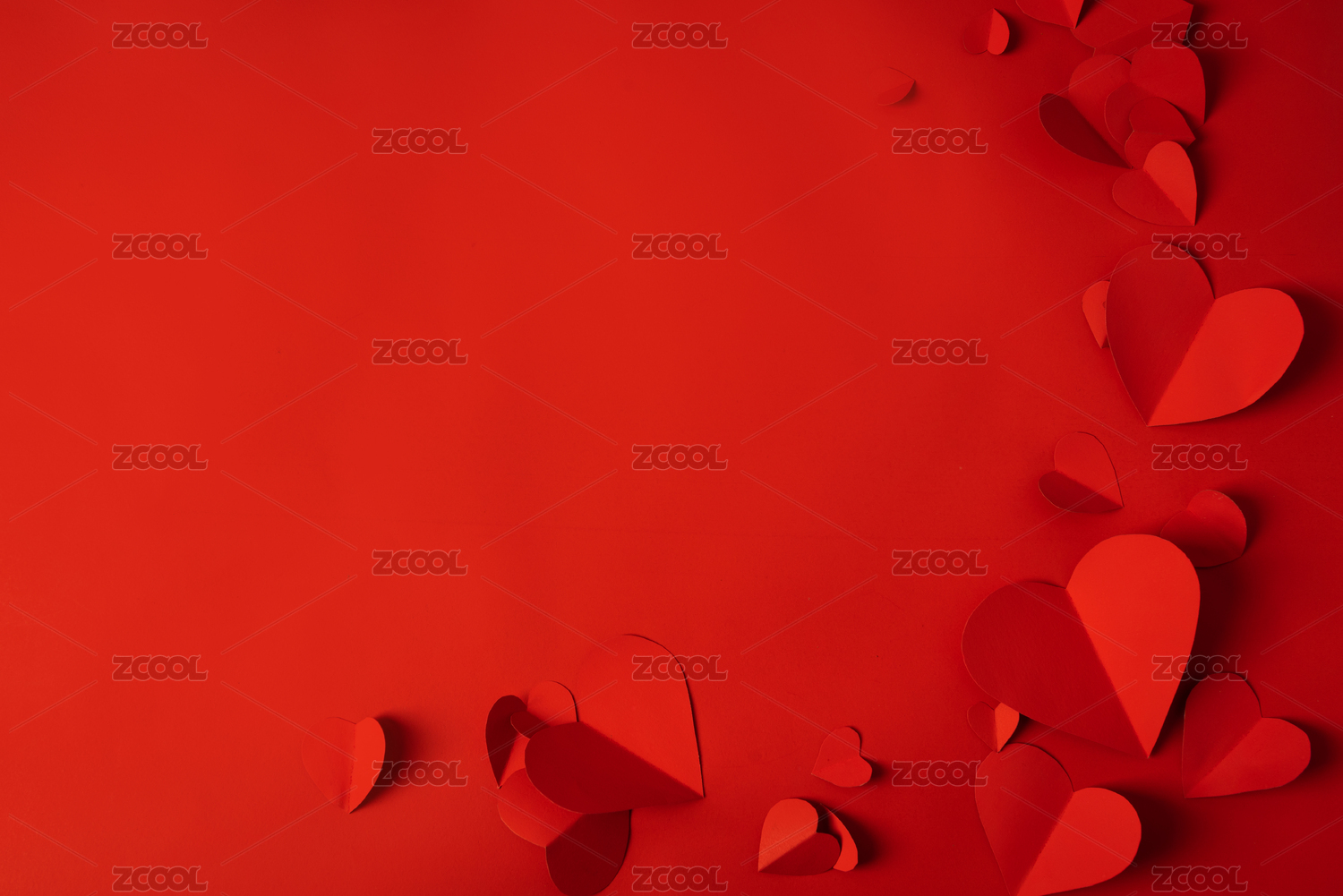情人节红色背景上的红色爱心剪纸