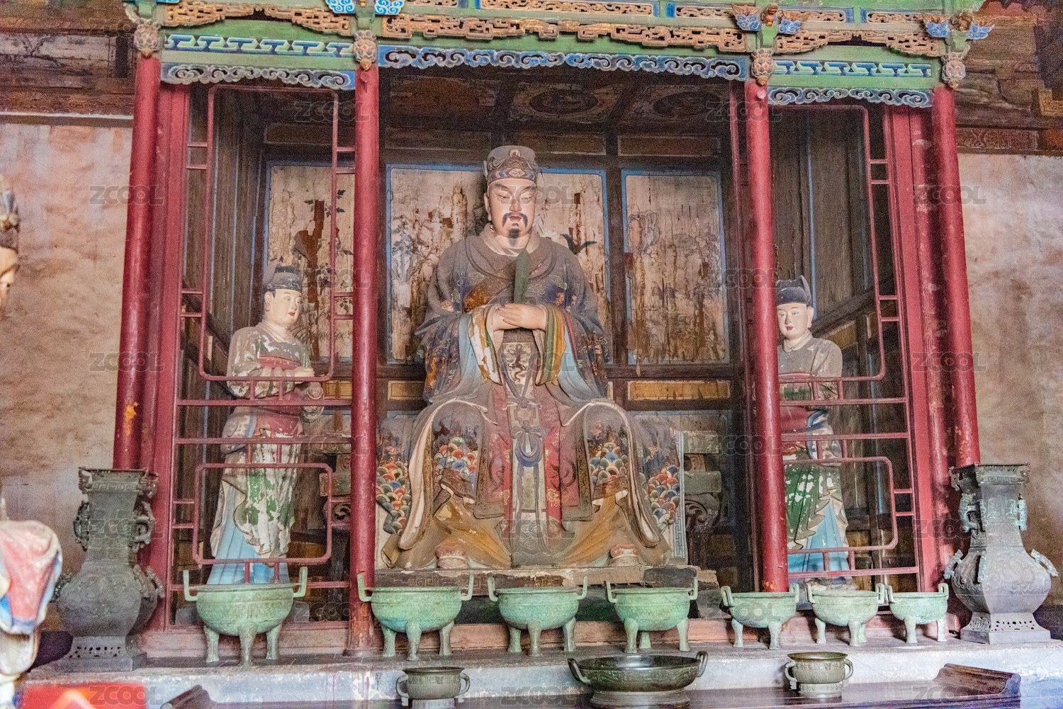 山西晋祠 圣母殿内的圣母邑姜彩绘雕塑