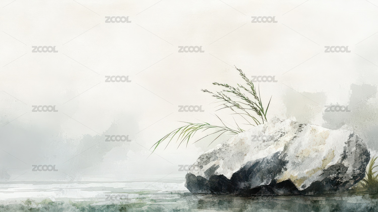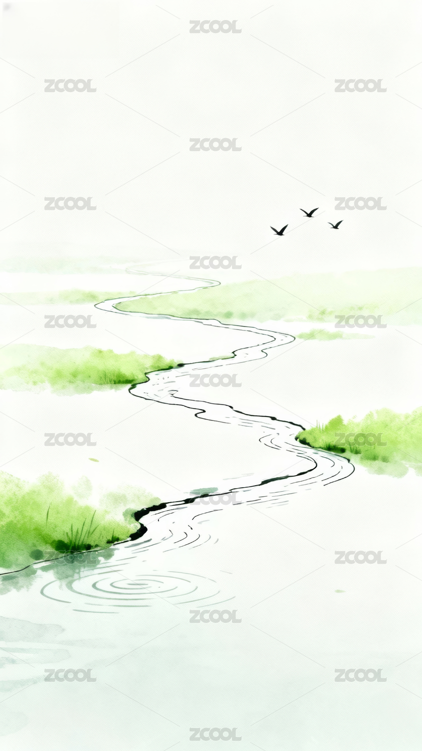 水墨写意淡雅山水画