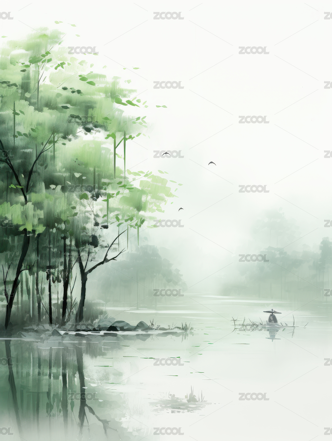 烟雨中国风山水意境水墨画