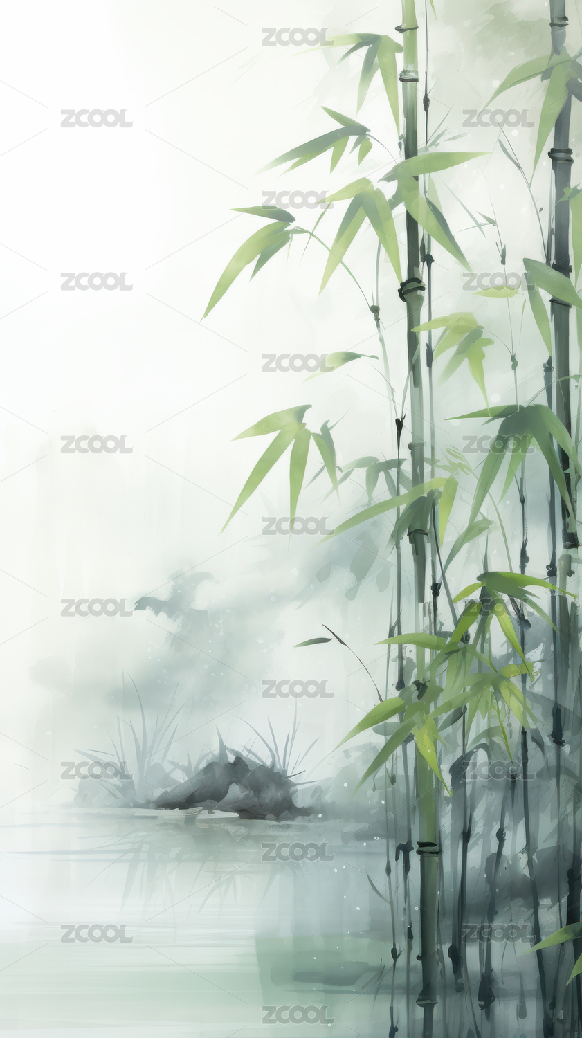 竹子山水水彩背景