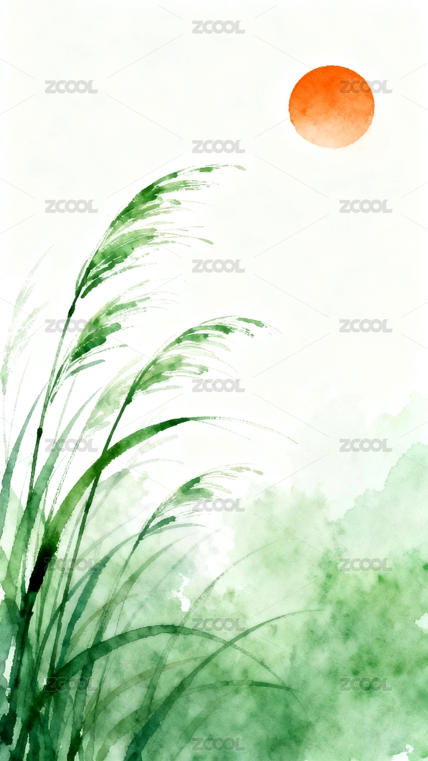 草叶水彩日落自然场景