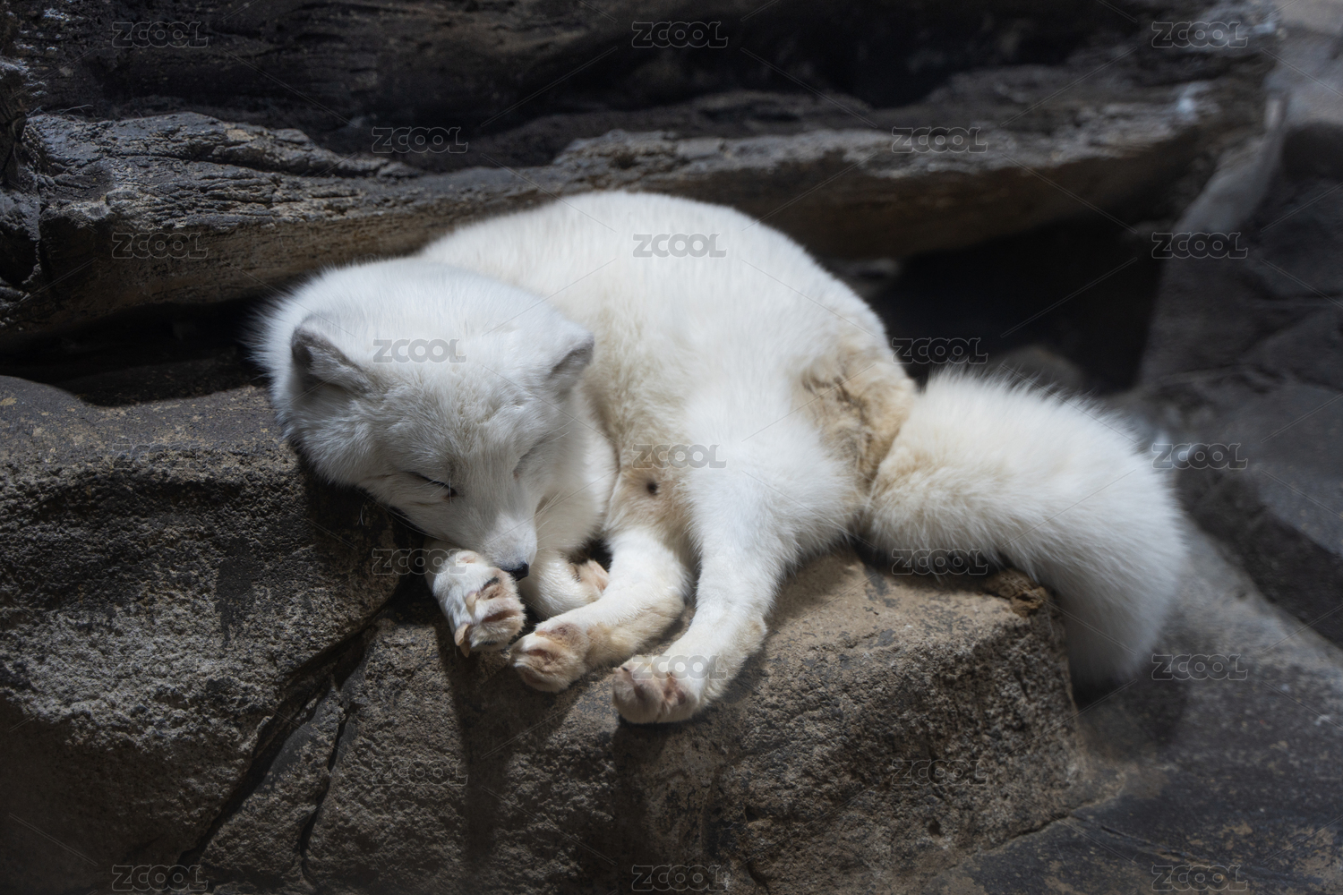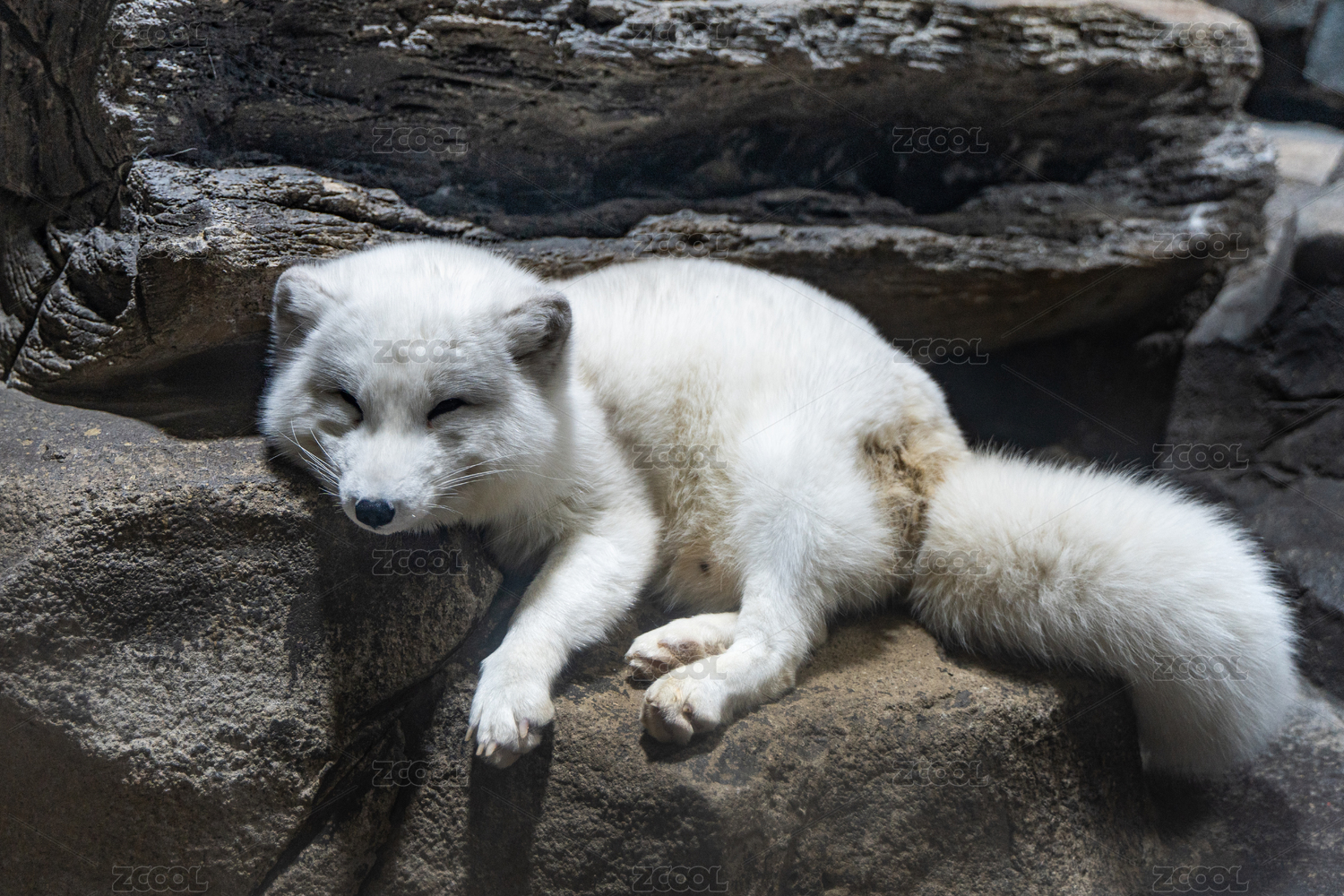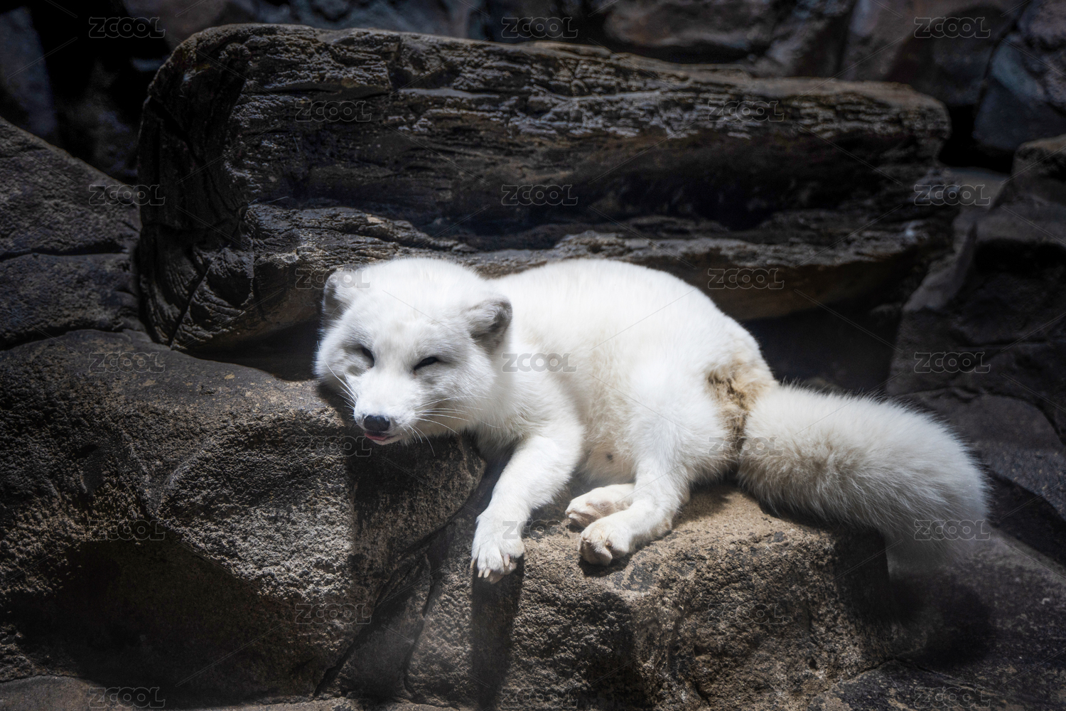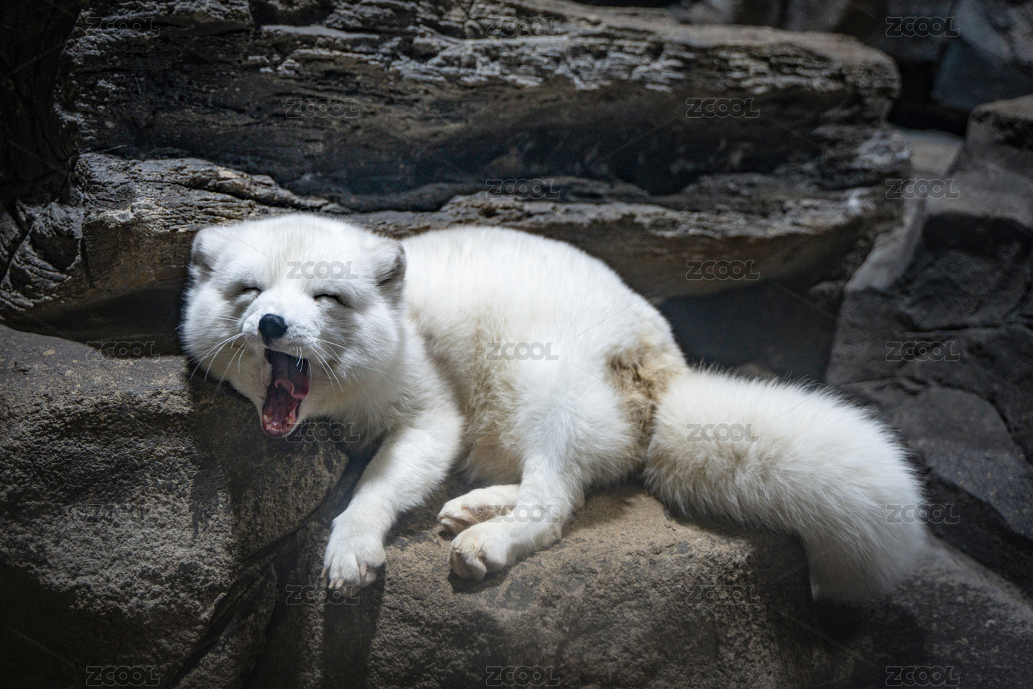 北极狐蓝狐白狐躺在地上休息打哈欠