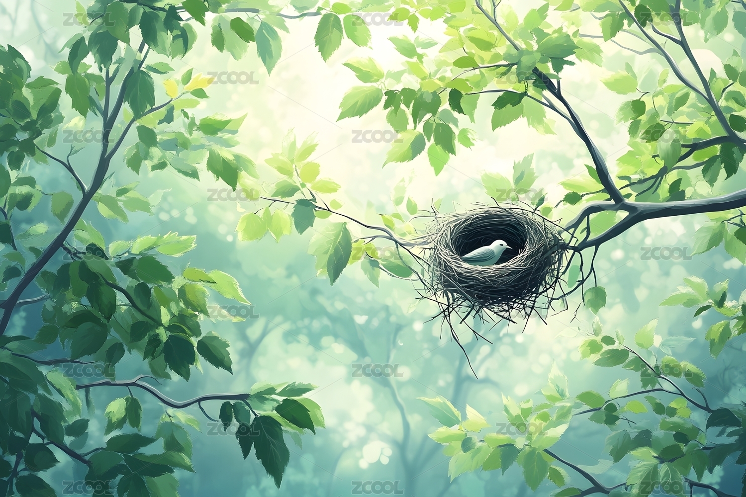 鸟巢,鸟蛋,春天,树林,树叶,阳光,绿色,自然,清新,生命