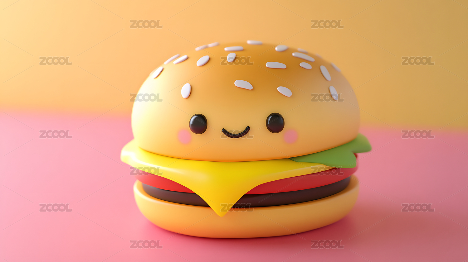 卡通,物体,Q版,可爱,明亮,汉堡包,面包,食物