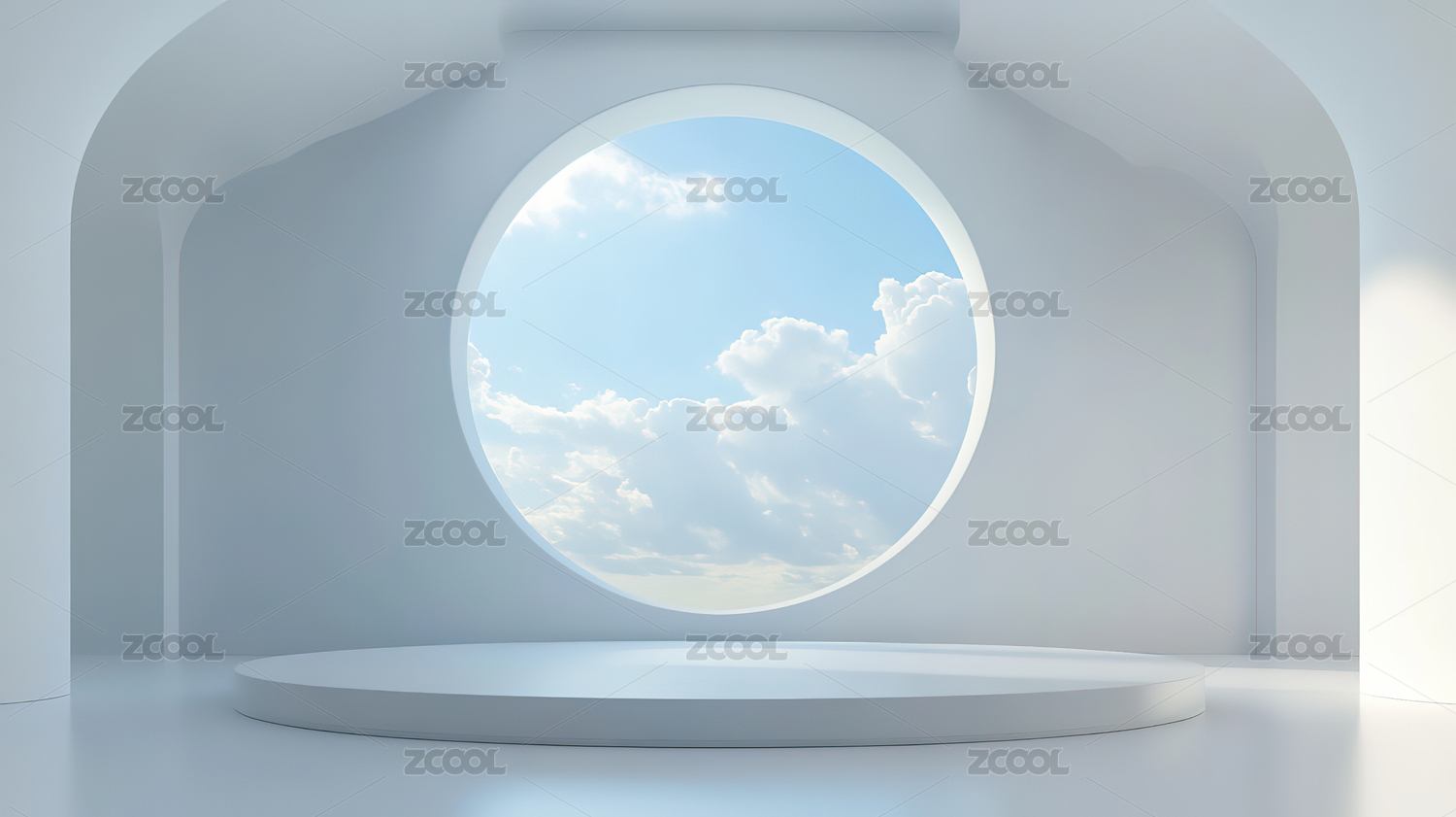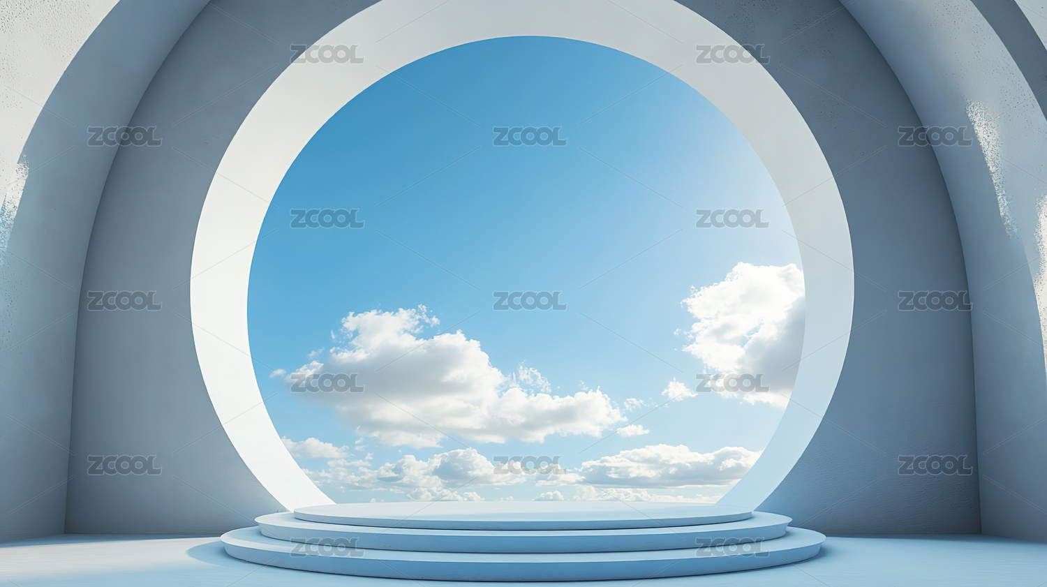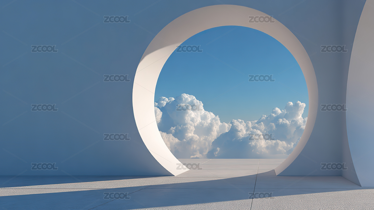 圆形拱门通向蓝天白云