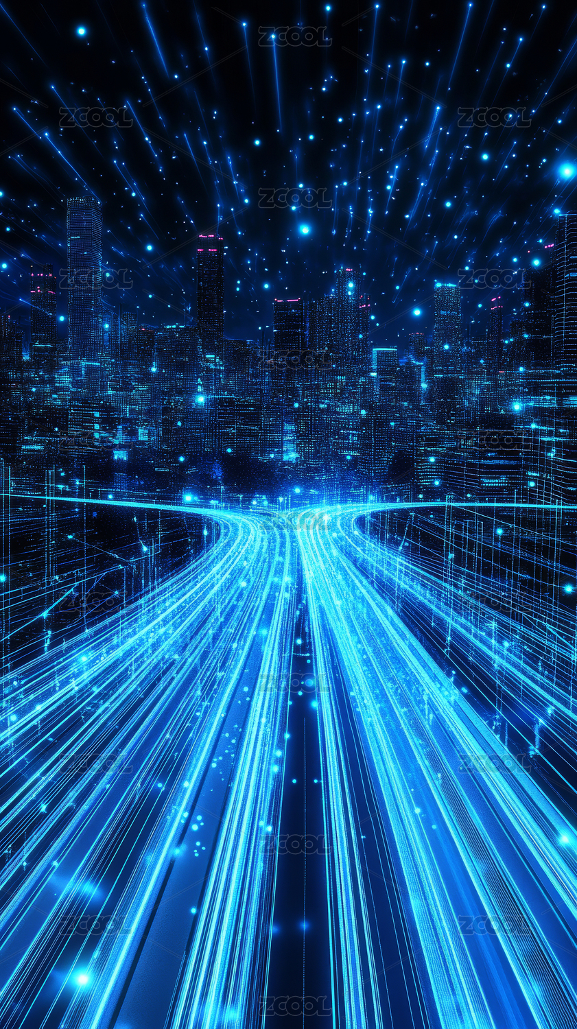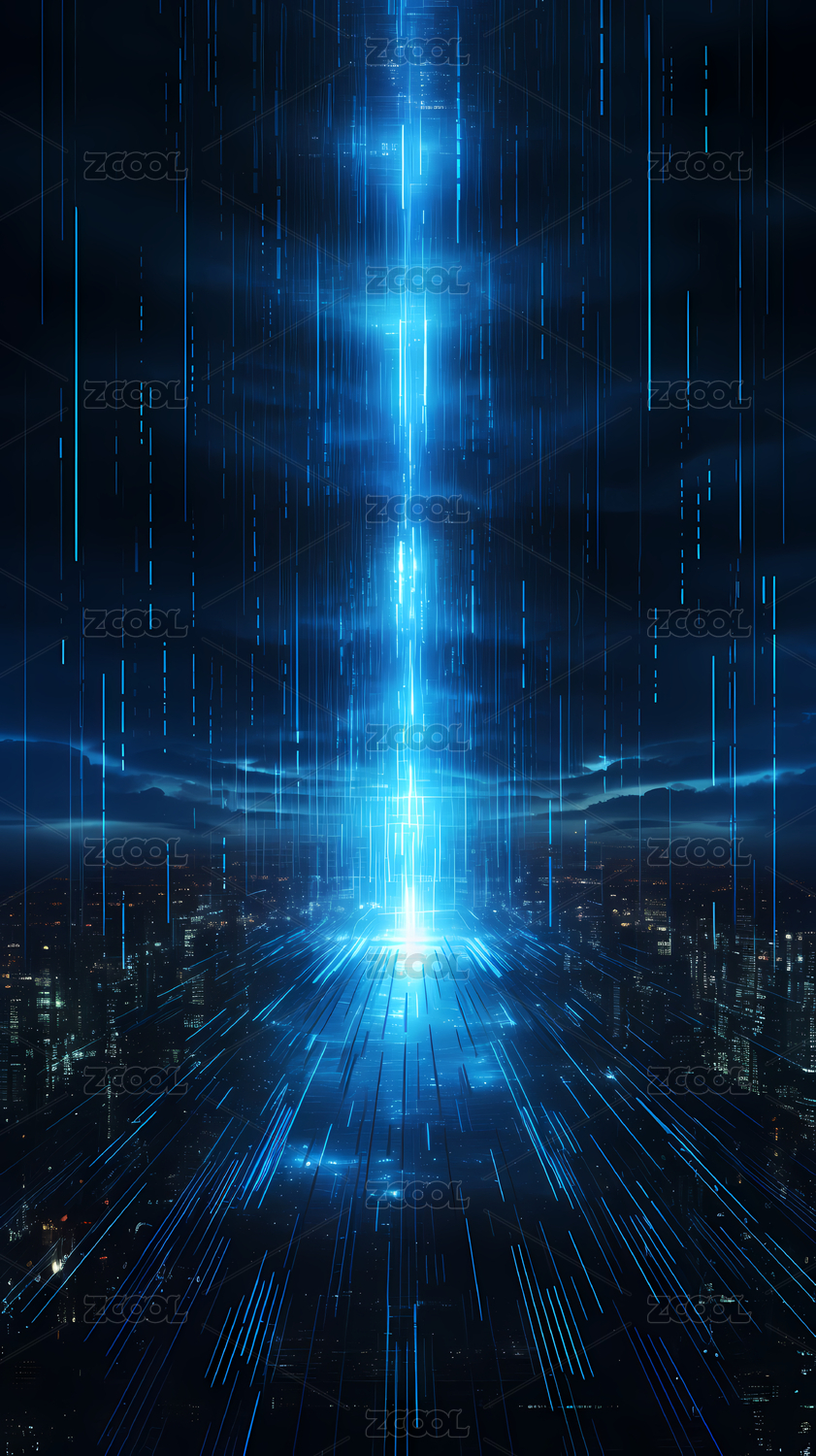 蓝色,光线,空间,科技,未来,数字,3D,三维,立体,AI