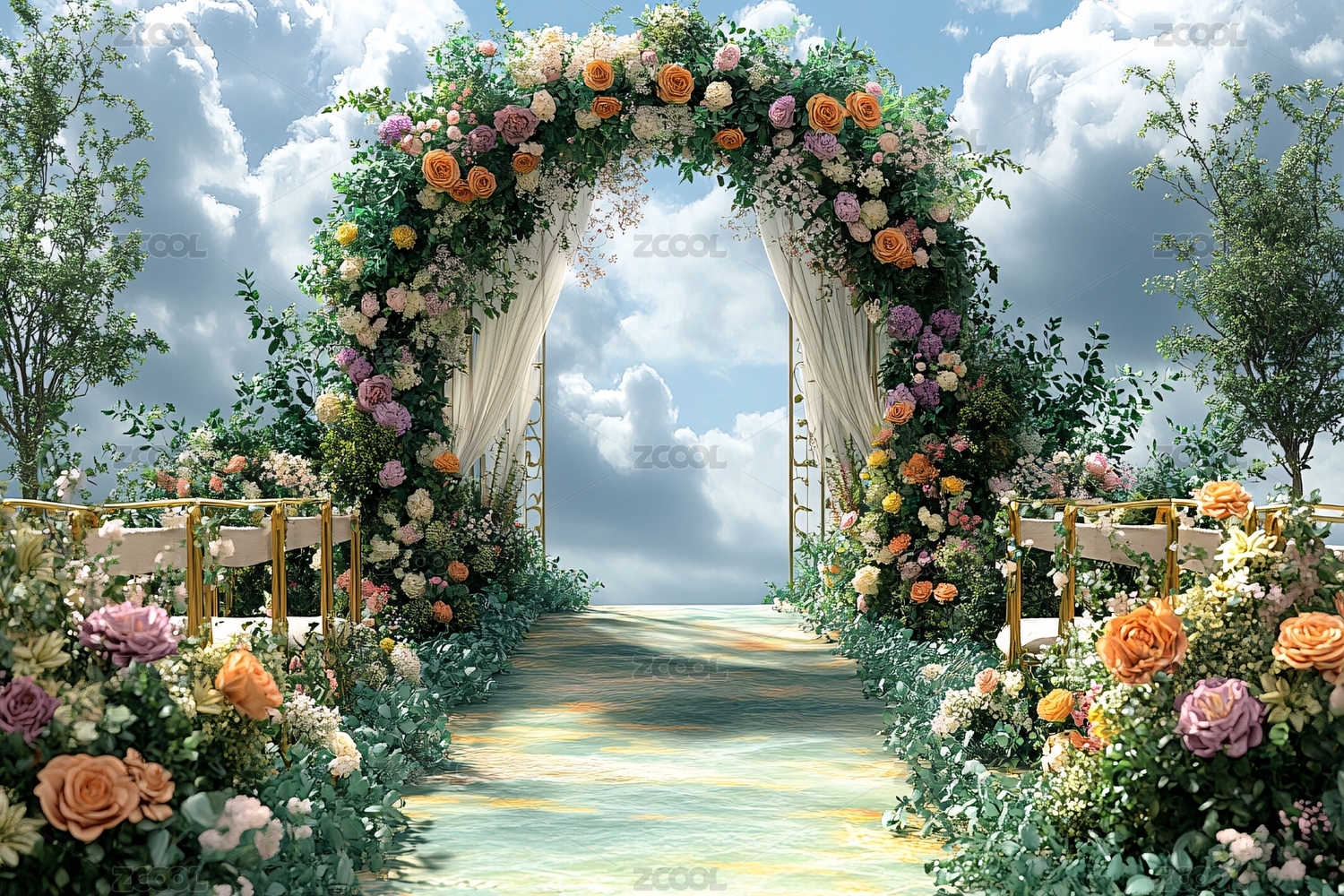 玫瑰,花拱门,花园,小路,梦幻,浪漫,唯美,3D,插画,春天