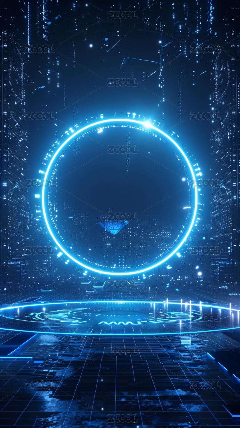 3D,蓝色,未来,科技,背景,壁纸,AIGC,空间,科技感,光环