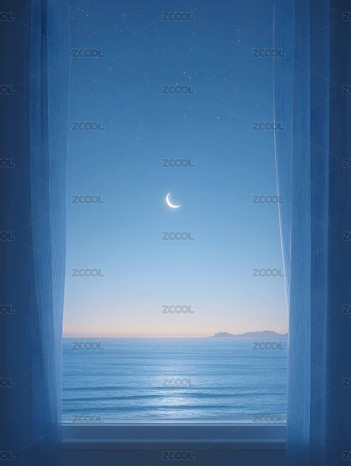 风景,宁静,唯美,梦幻,夜晚,天空,浪漫,云朵,大海,月亮