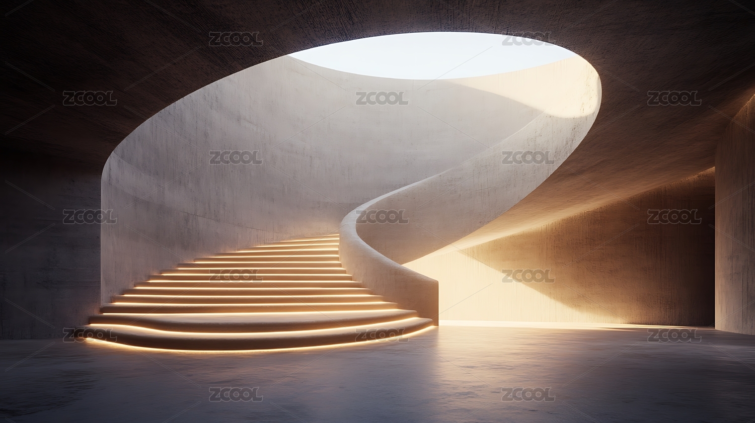现代建筑内部的螺旋楼梯与光影效果