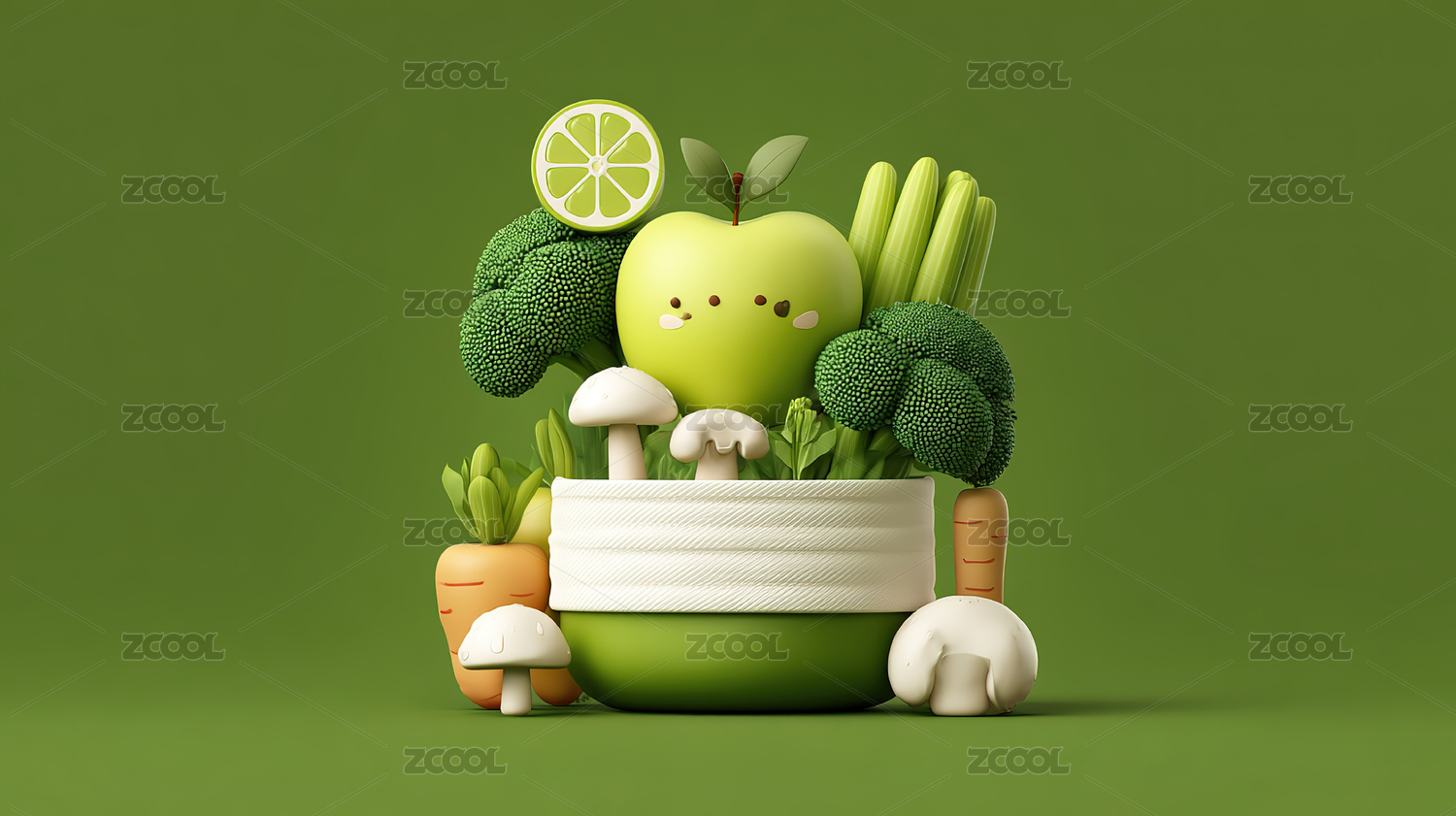 3D新鲜蔬果的清新组合插画