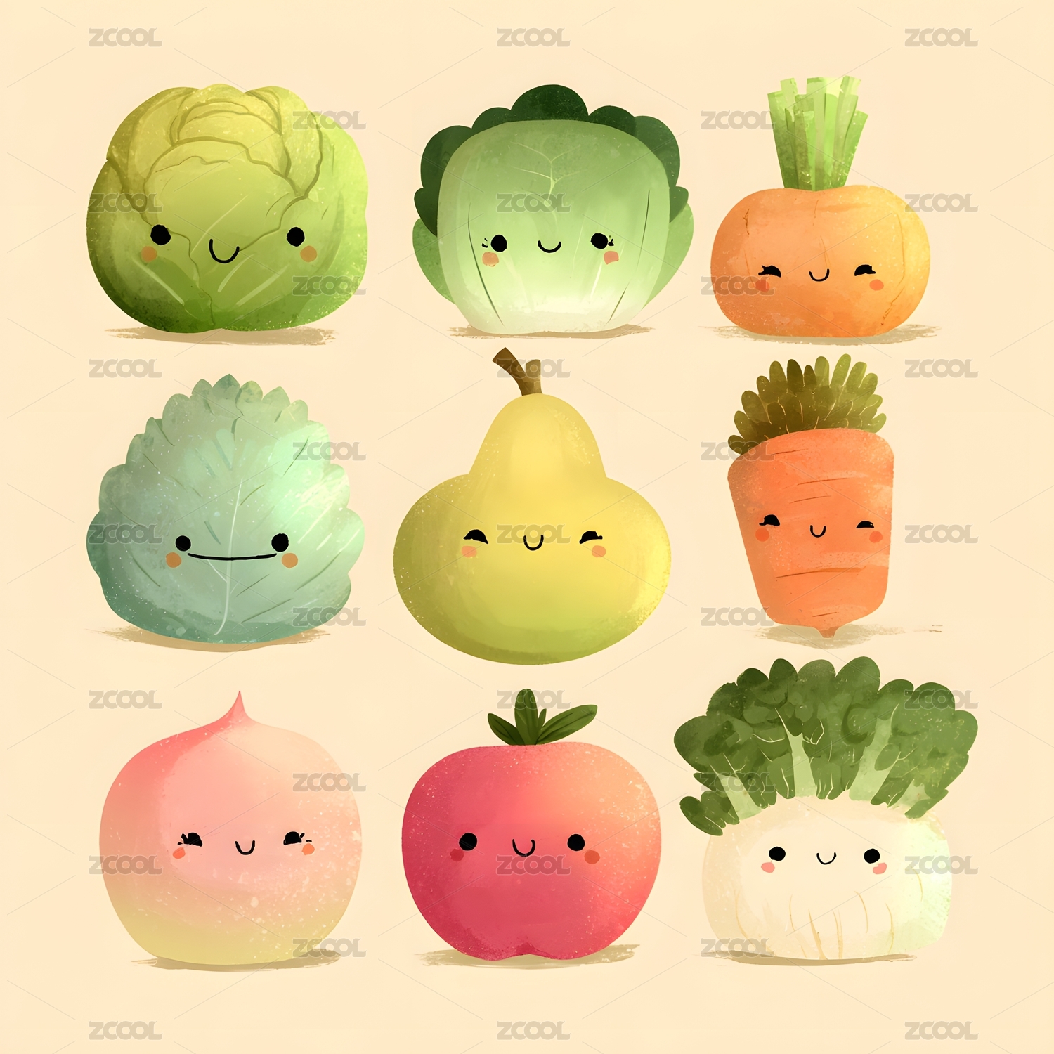 可爱卡通蔬菜水果插画集合