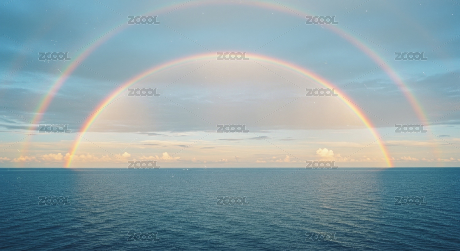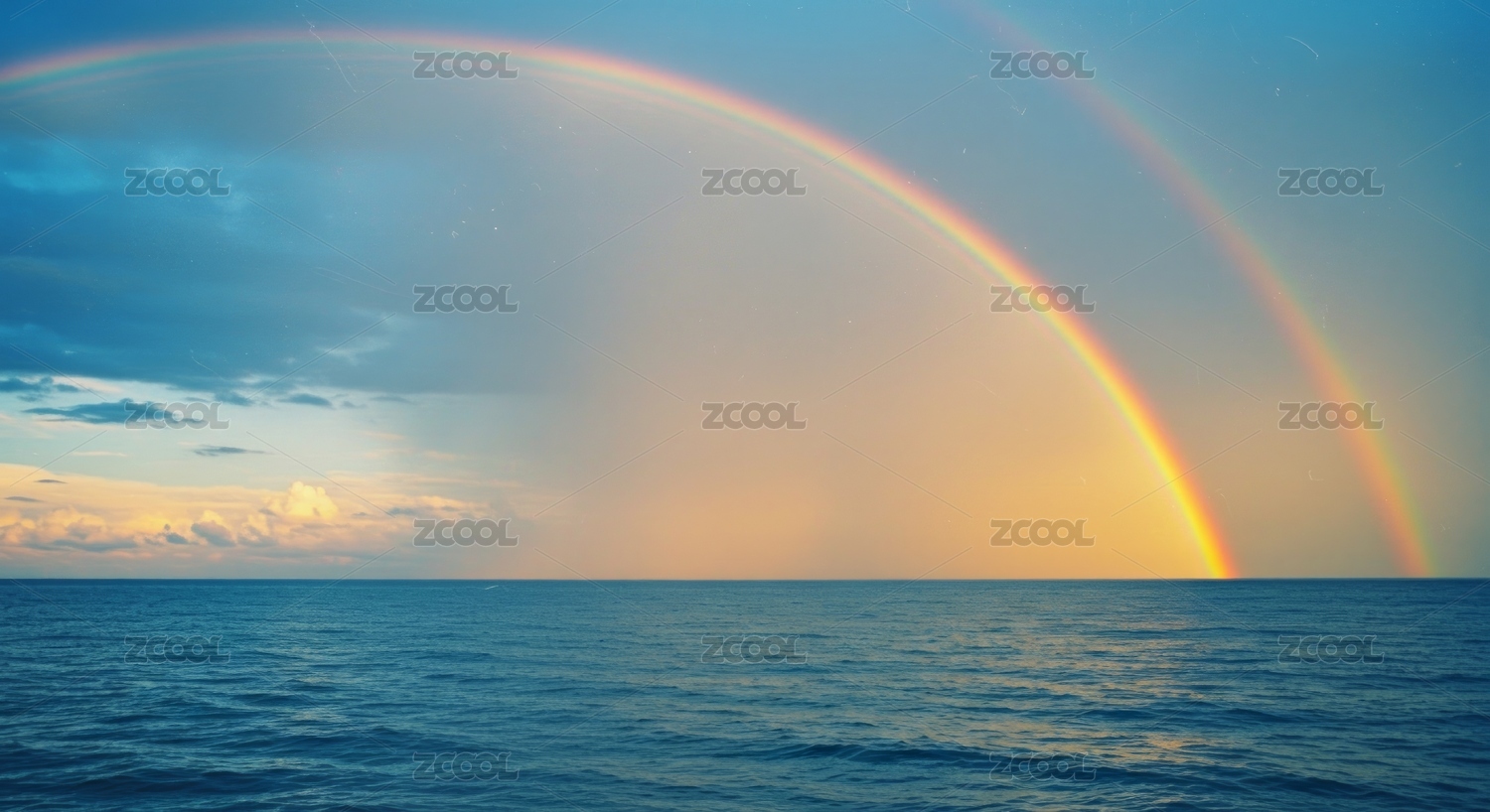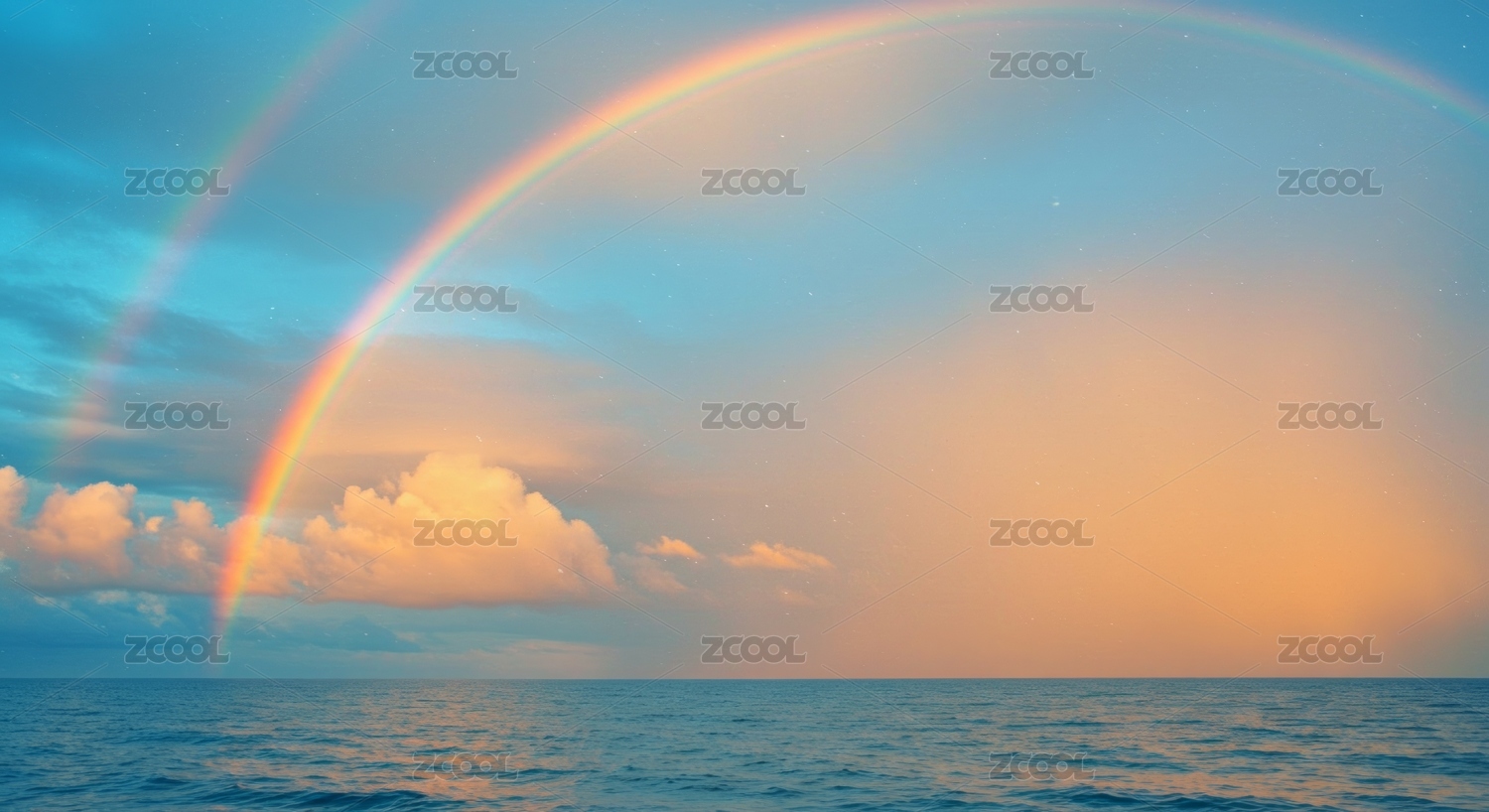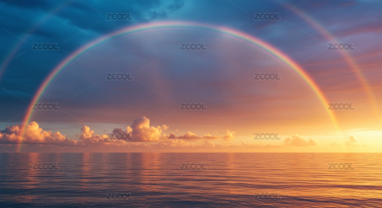 光线,梦幻,色彩,彩虹,海洋,天空,云,日落,平静,水面