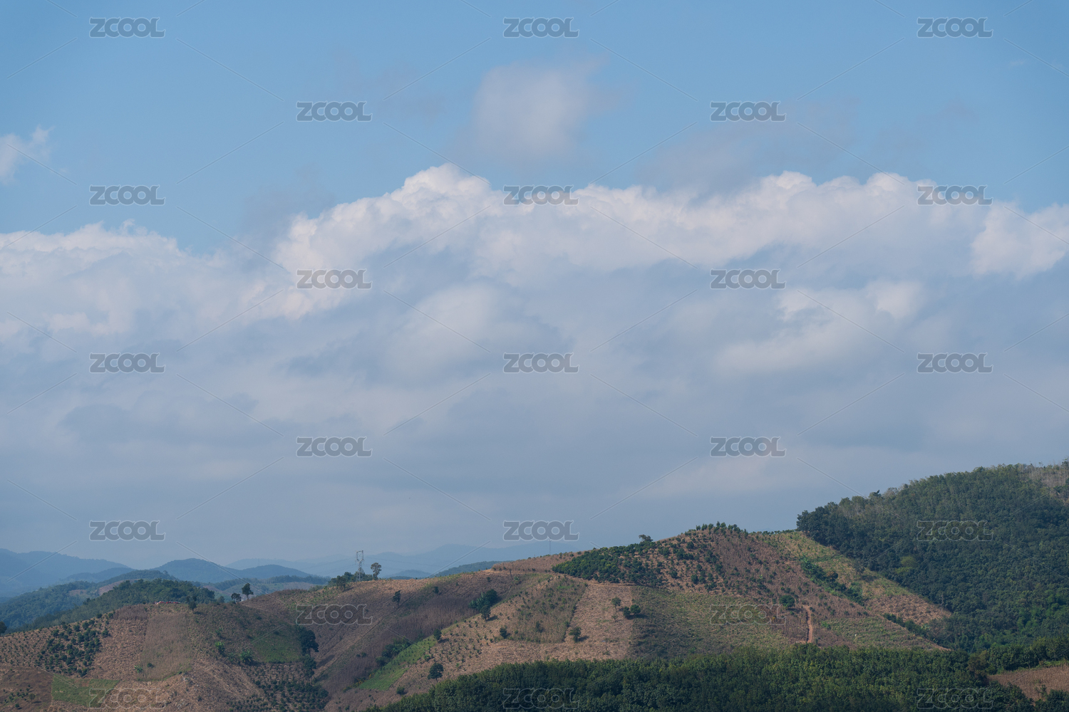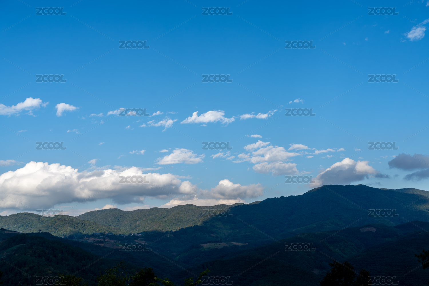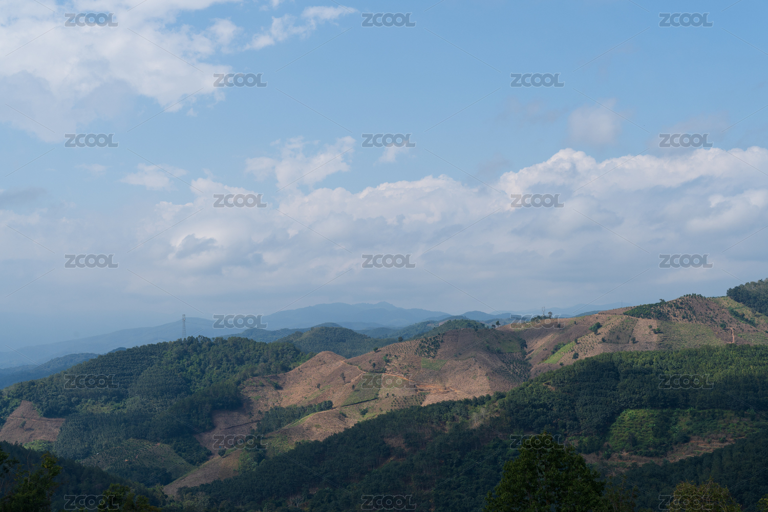 山峦,蓝天,白云,自然风光,山脉,植被,晴天,远景,山林,云朵
