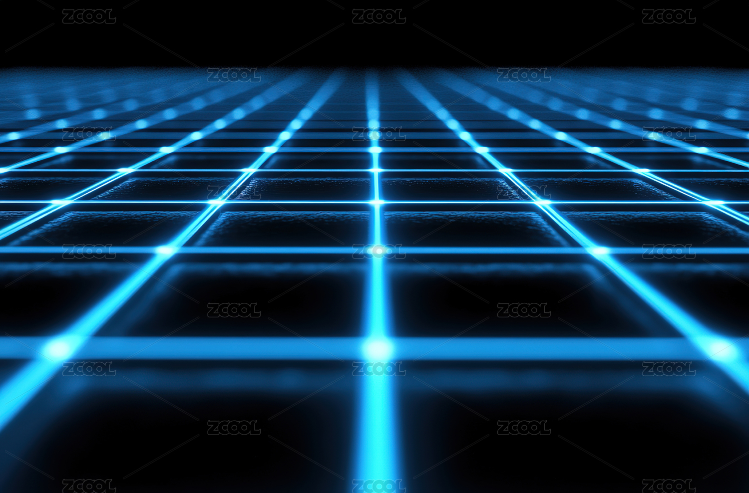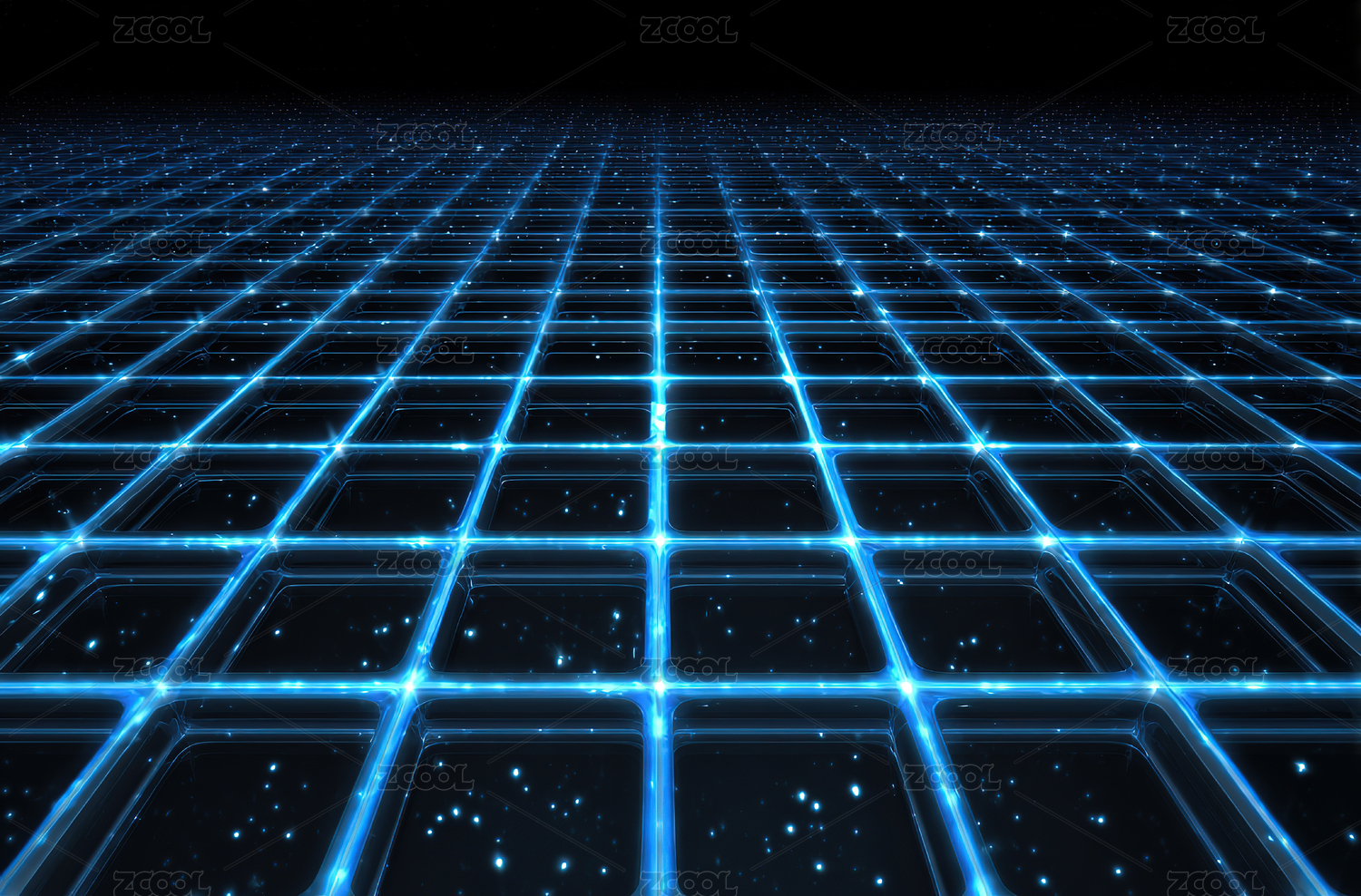 蓝色光网格的无限延伸