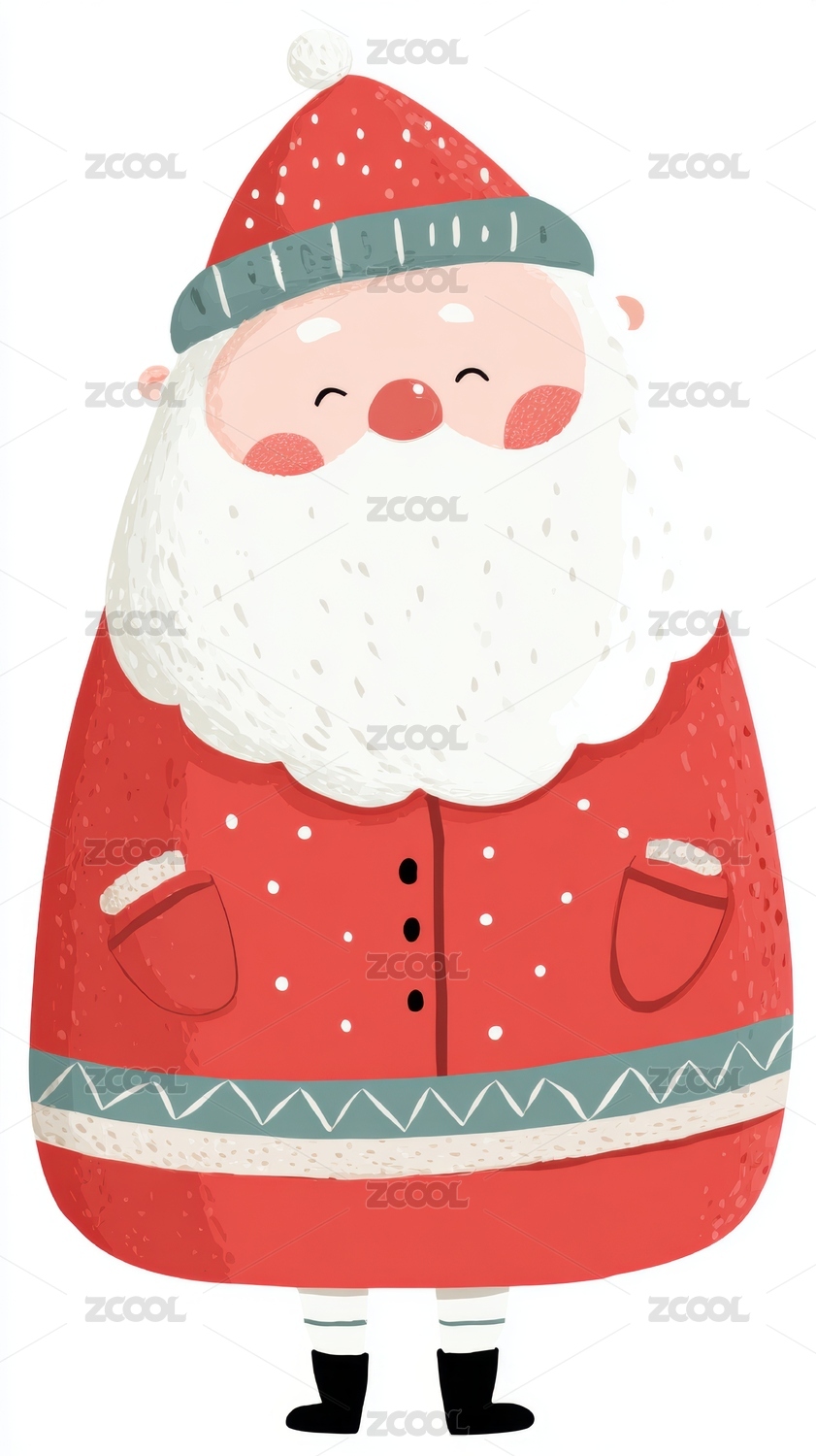 蓝色背景下戴彩色圣诞帽的圣诞老人