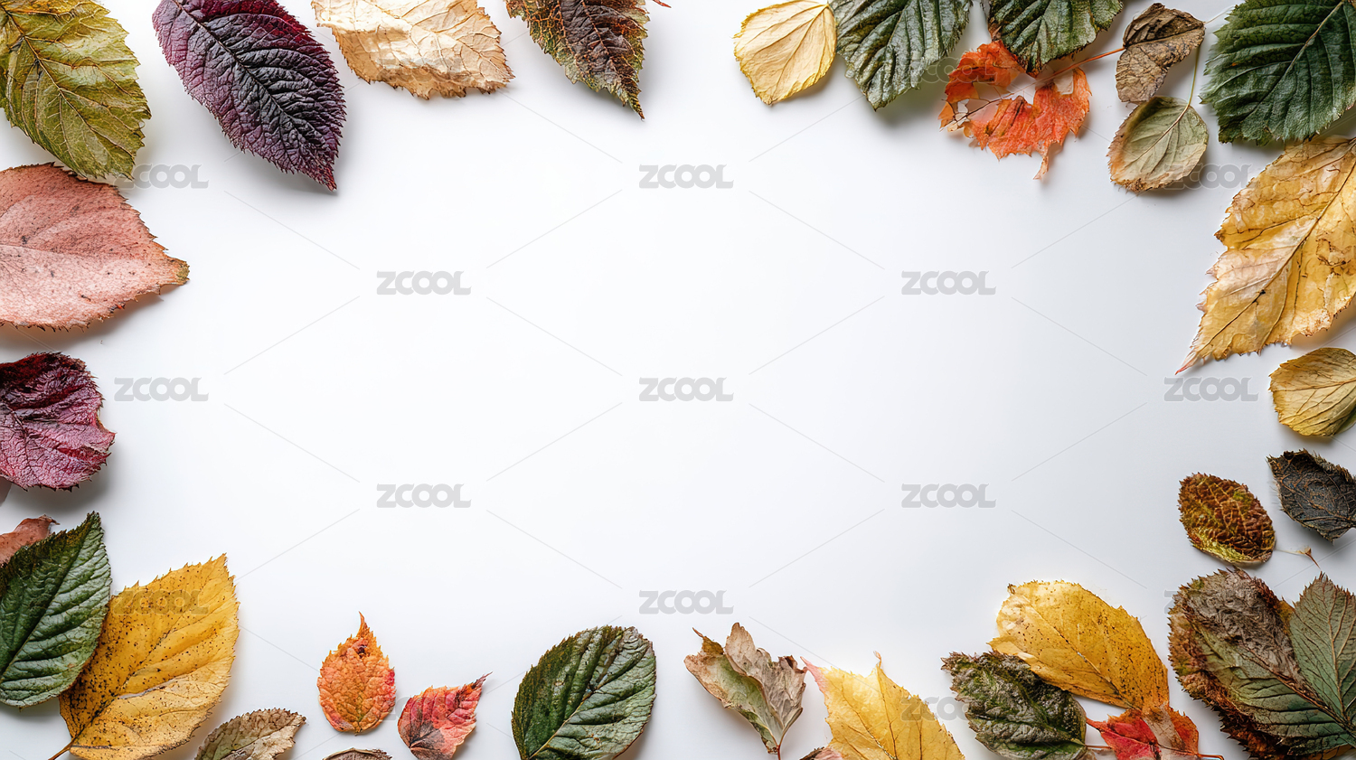 多彩秋叶环绕的空白背景