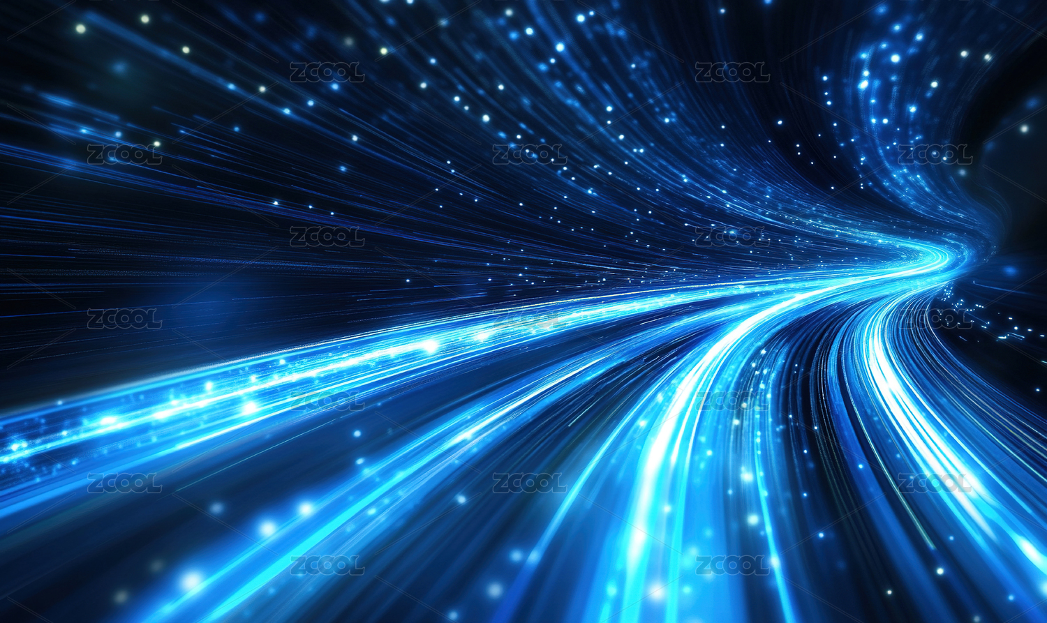 蓝色能量粒子隧道模糊散景发光明亮抽象背景