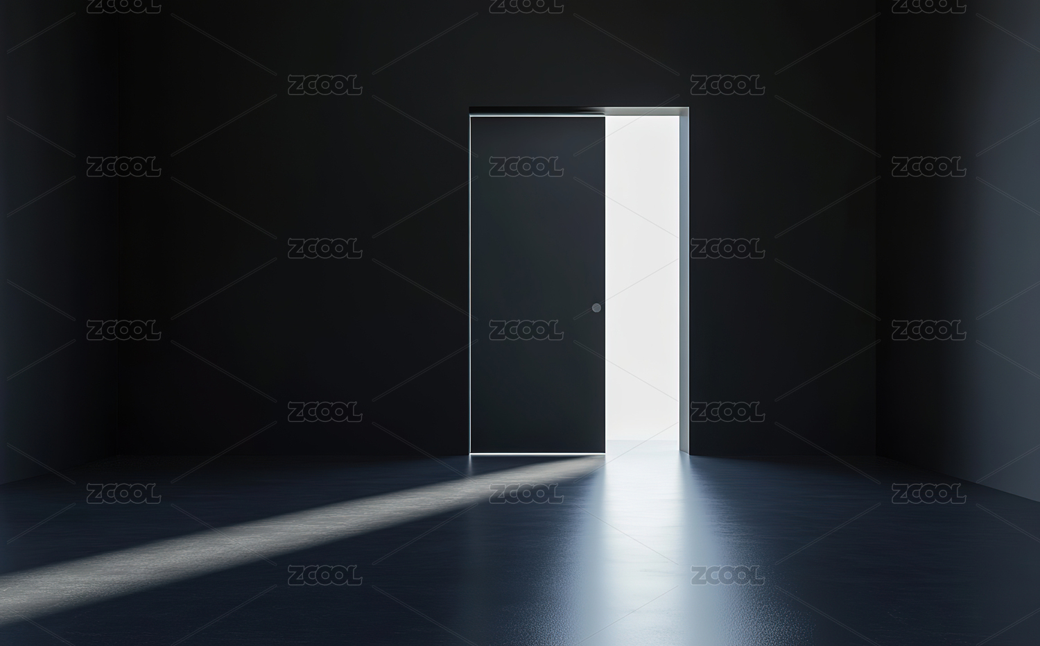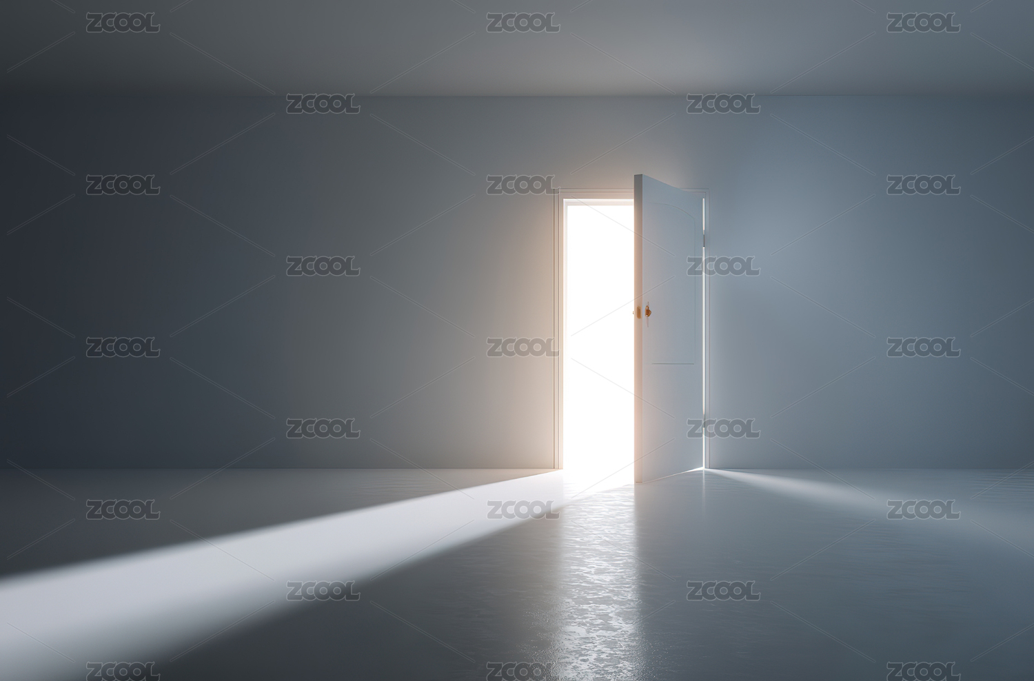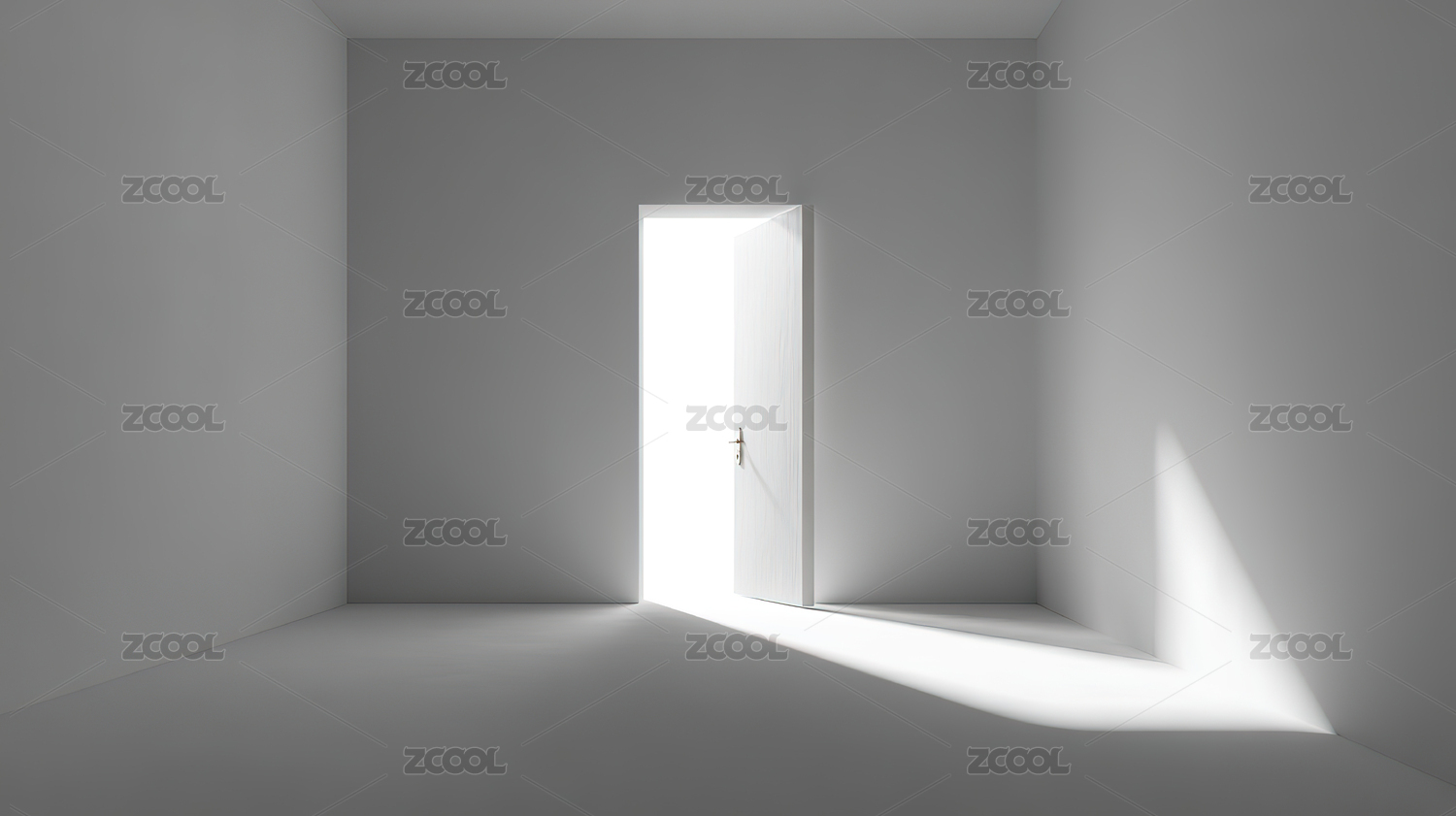 明亮光线透过半开的门照亮空旷房间