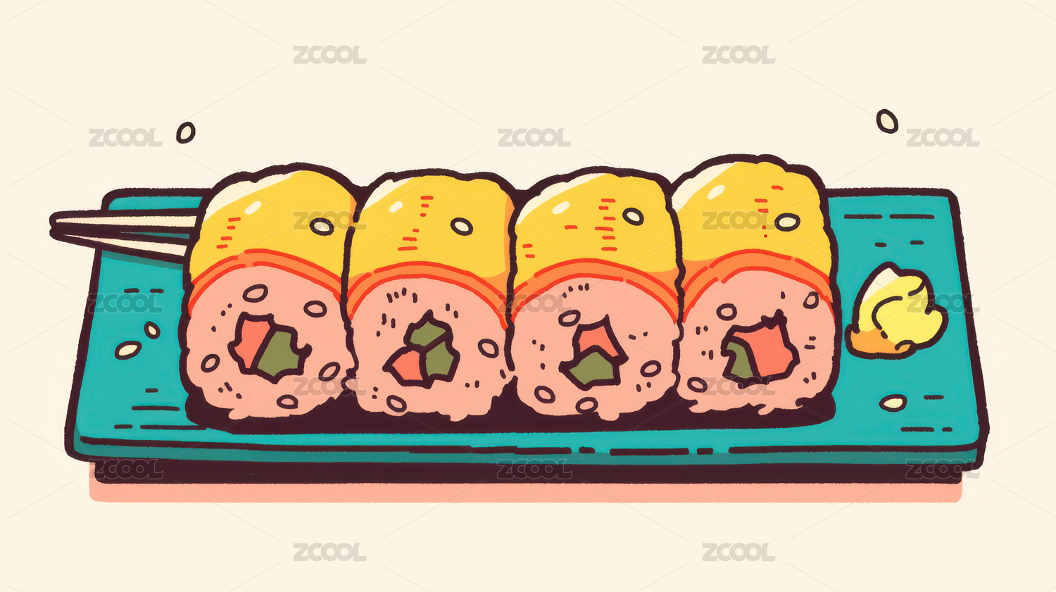 插画风格的寿司拼盘