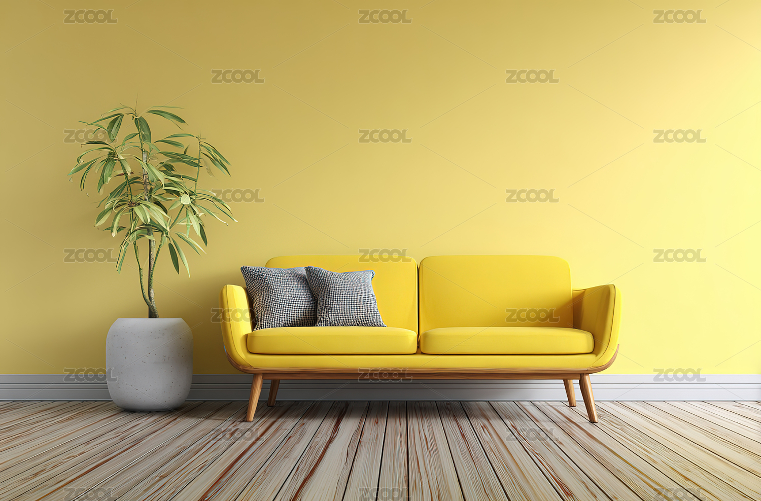 沙发,黄色,墙壁,地毯,植物,木质,地板,靠垫,室内,设计