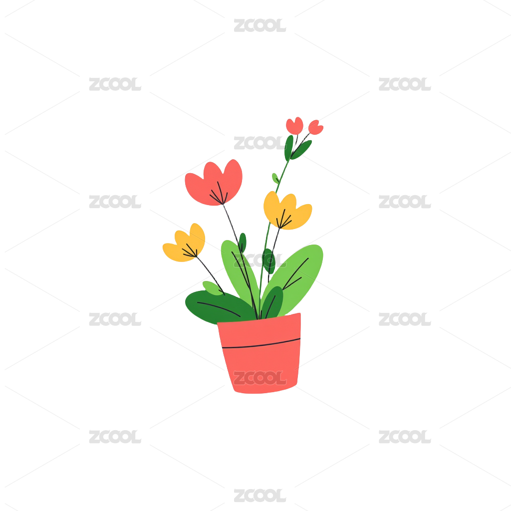 花瓶中绽放的花朵 线描插画