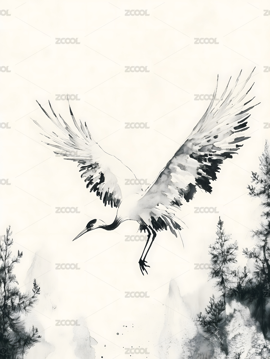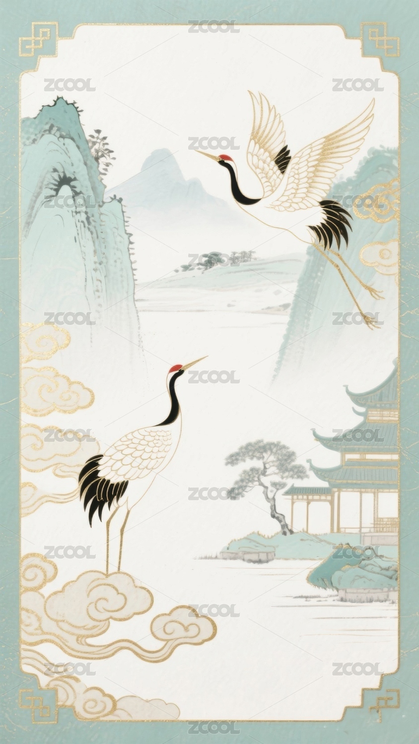 中国风仙鹤山水插画