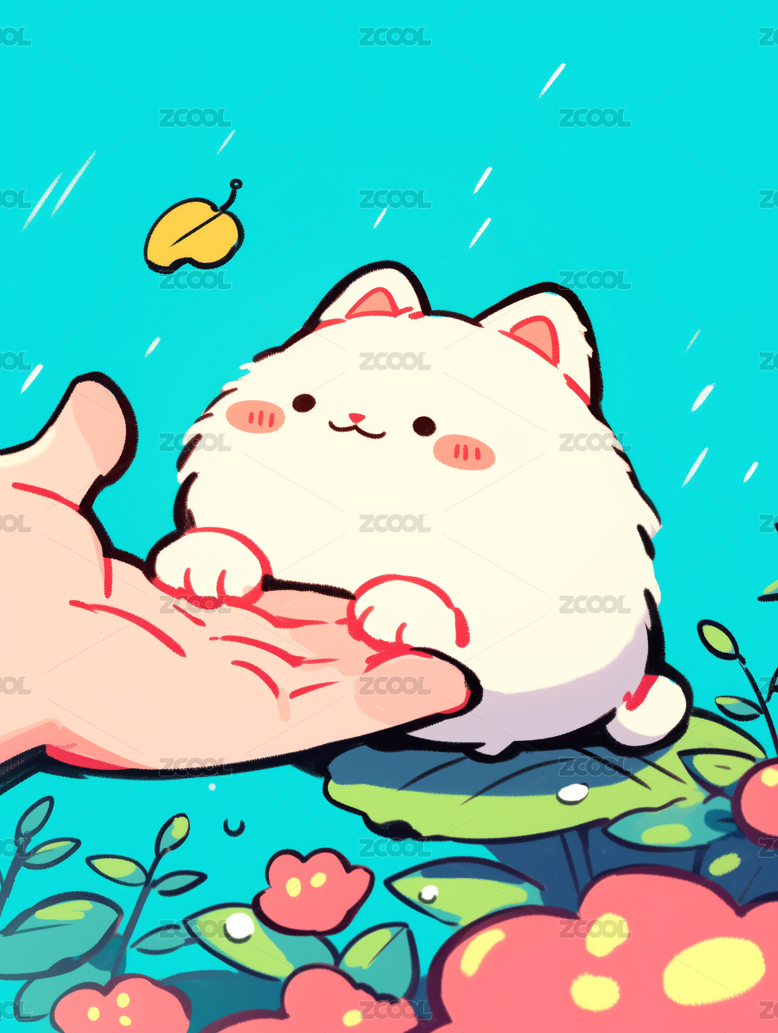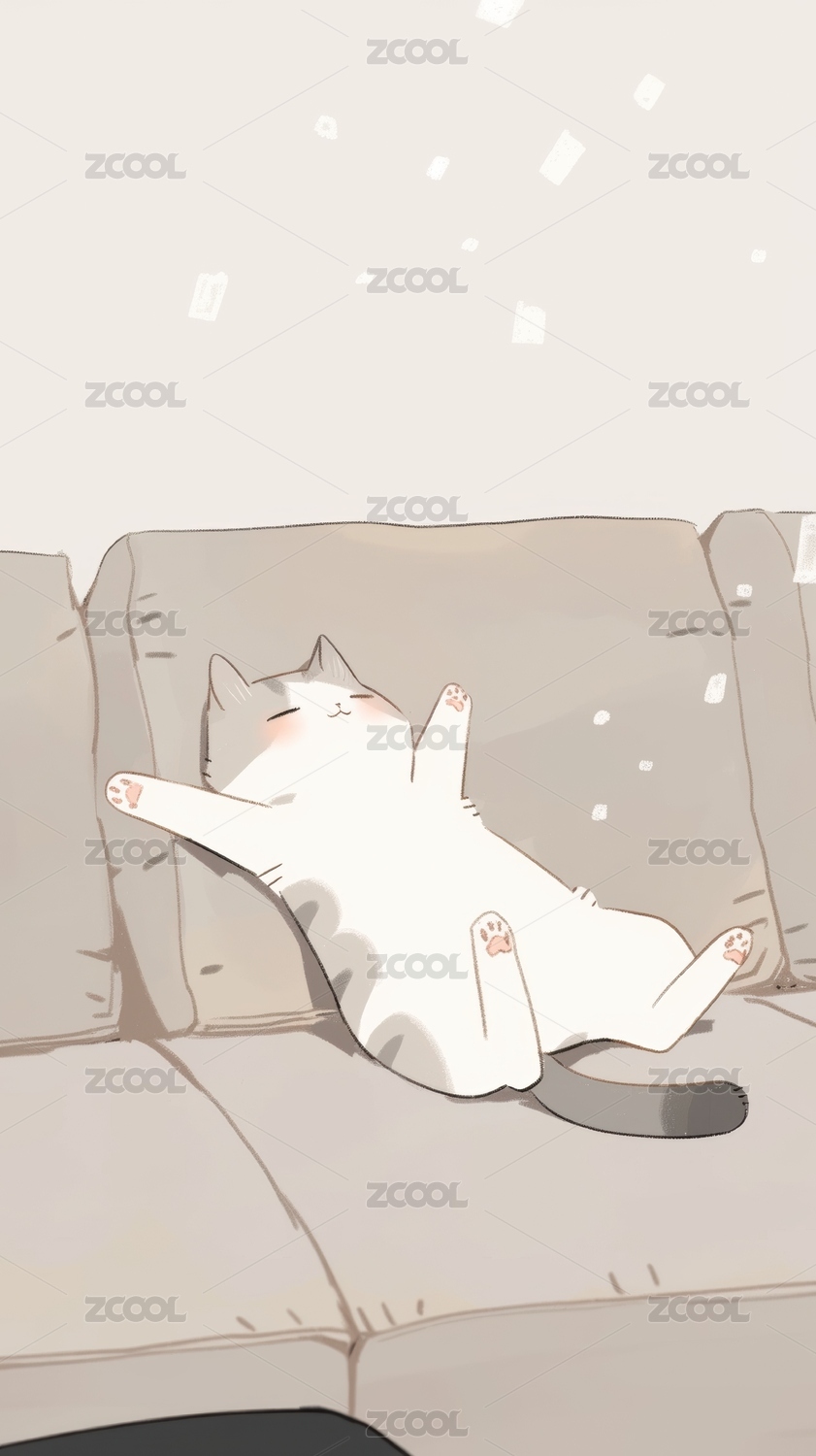 治愈,可爱,猫咪,壁纸,手绘风,插画