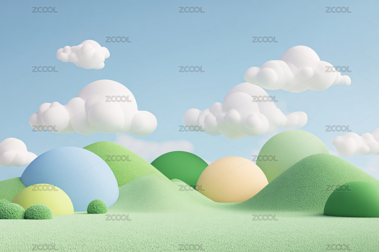 森林,卡通,彩色,树木,山丘,云朵,自然,景观