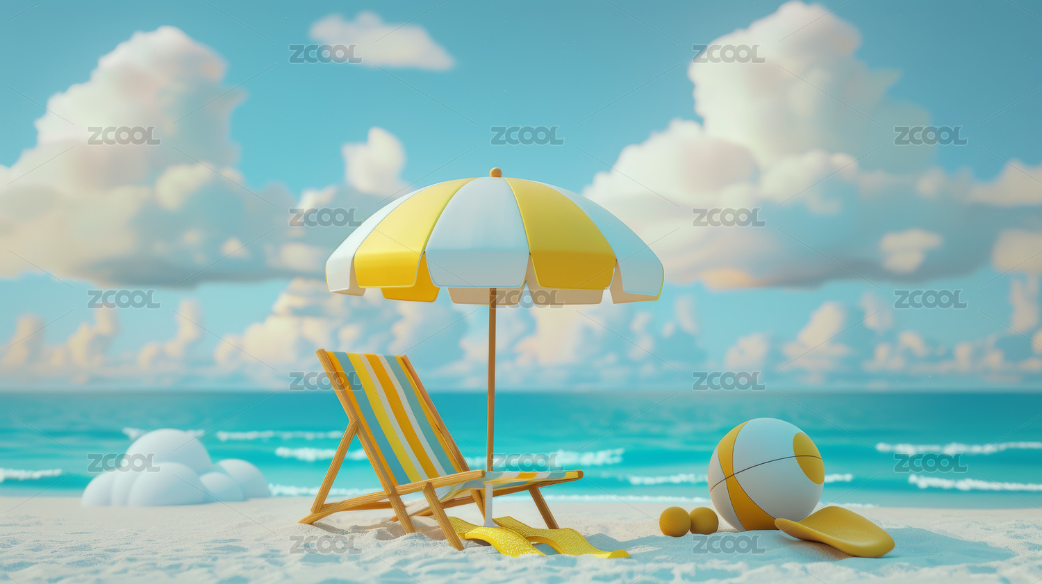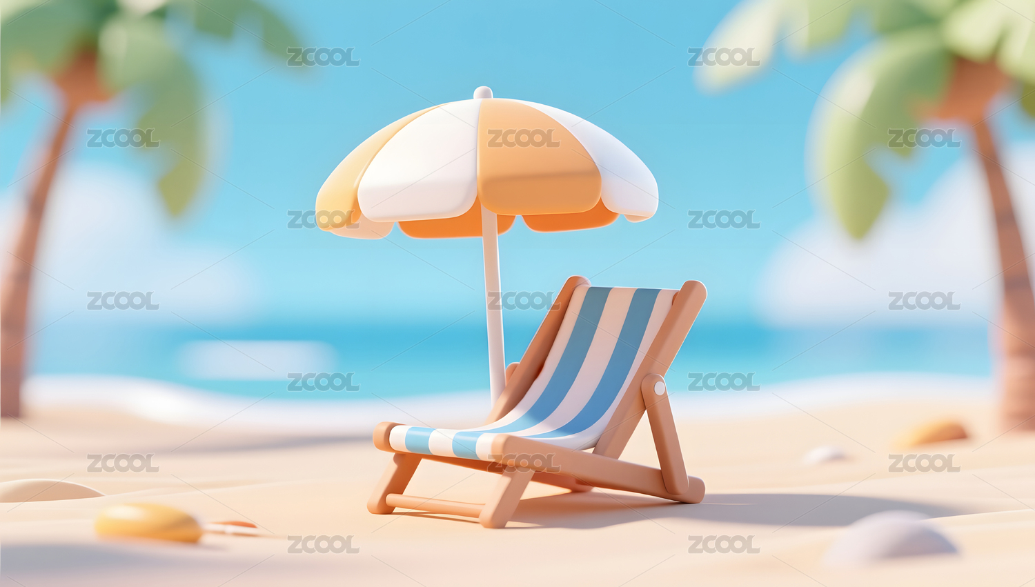 夏日海边沙滩度假出游夏季海滩3D清新插画