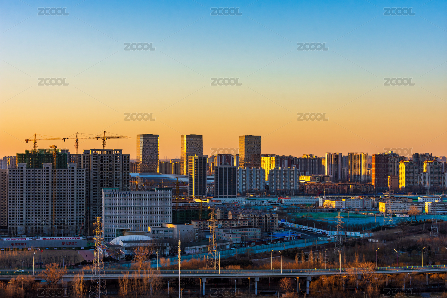 日落时分的北京通州商务区城市景观