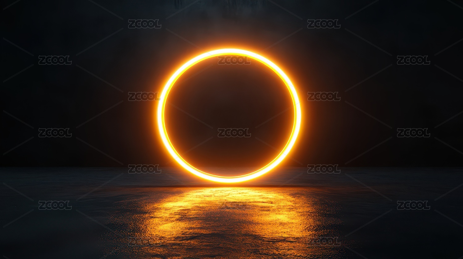 光圈,发光,橙色,水面,倒影,雾气,朦胧,光影,神秘,科技
