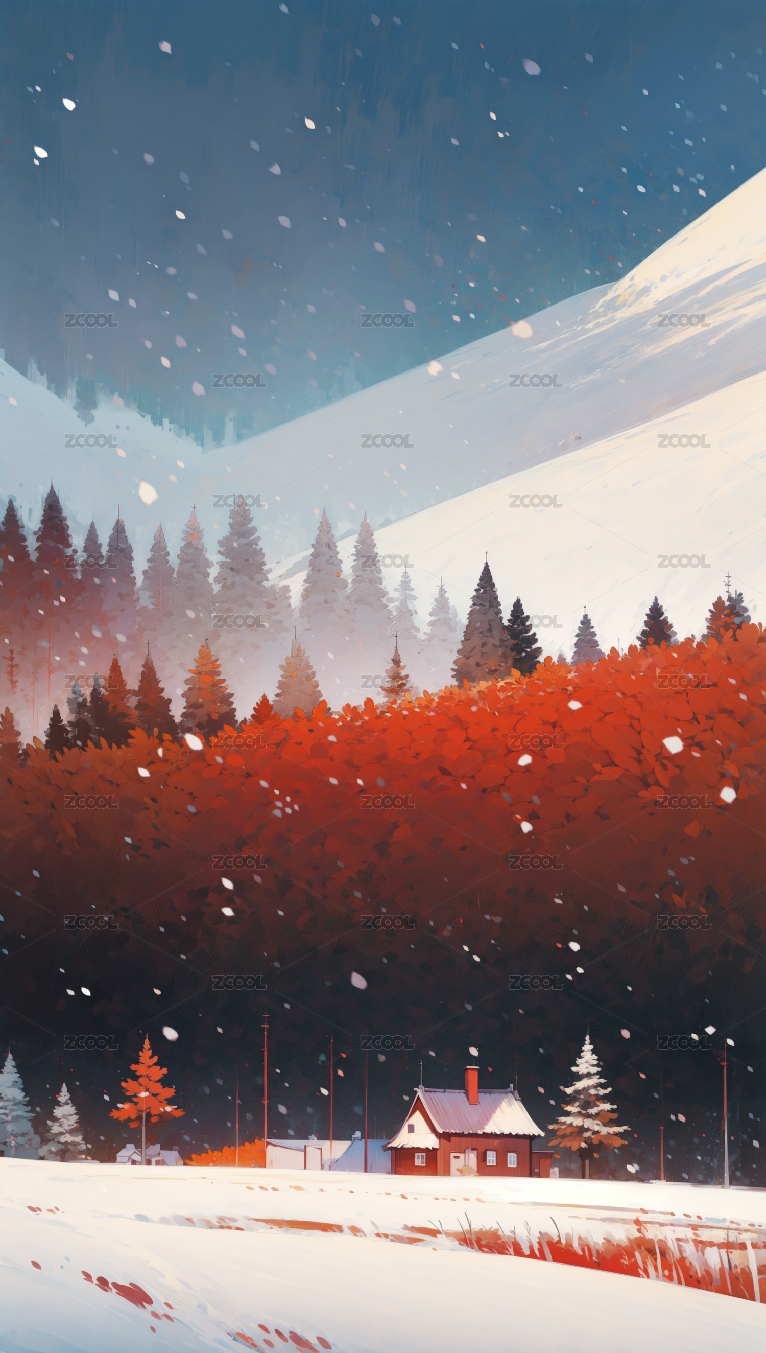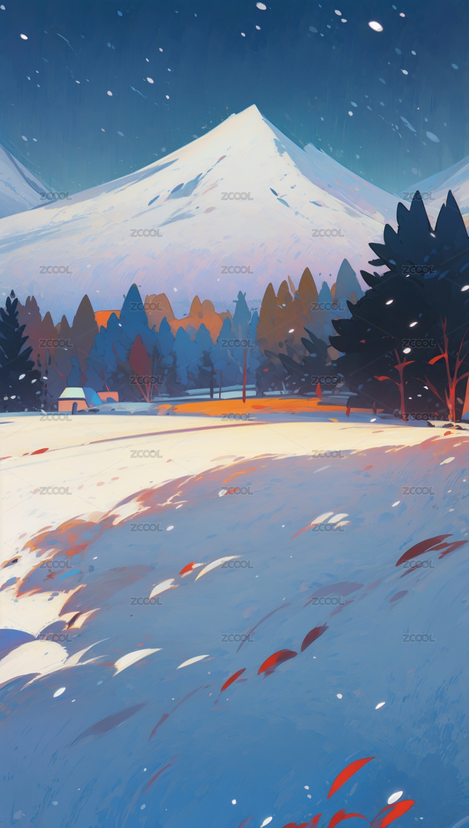 冬季,雪景,插画,飘雪,下雪,冬天,雪地,平面风,背景,风景