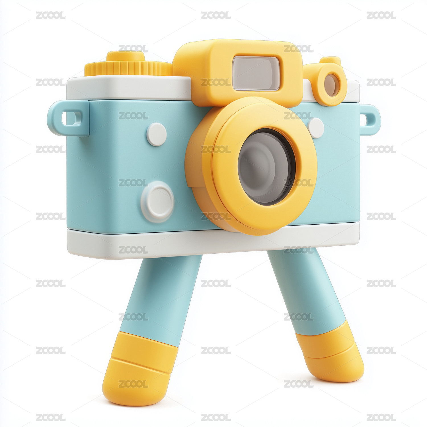 卡通相机3D渲染摄影设备镜头三维卡通插图