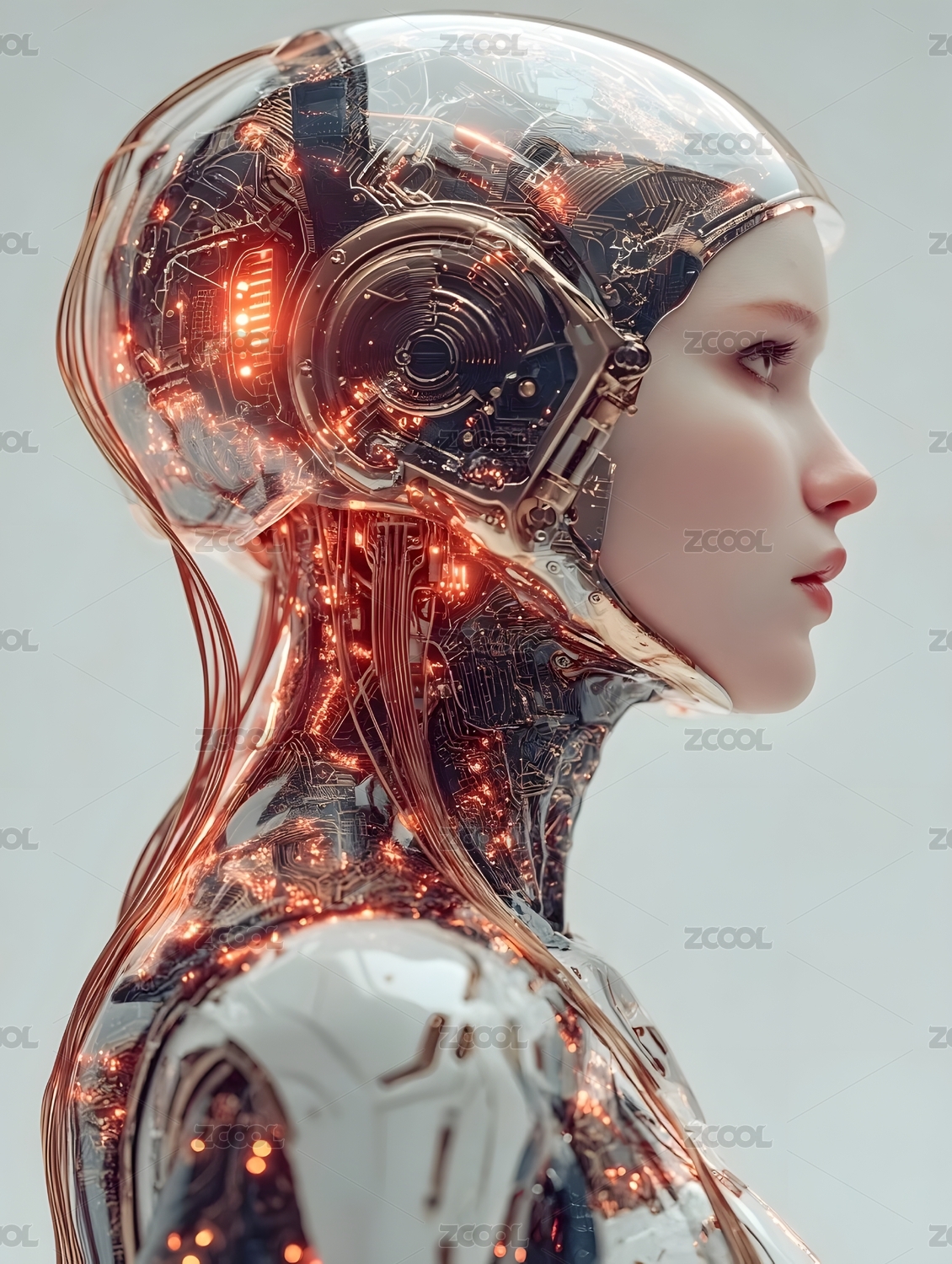 3d未来科幻赛博朋克女性机器人头像
