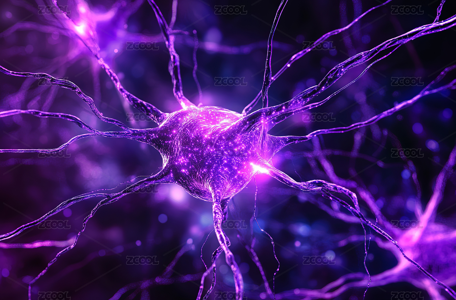 神经元细节的紫蓝3D渲染图