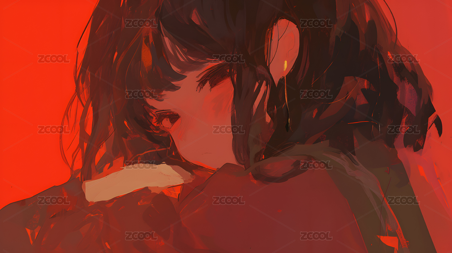 红色少女背影的忧郁画像