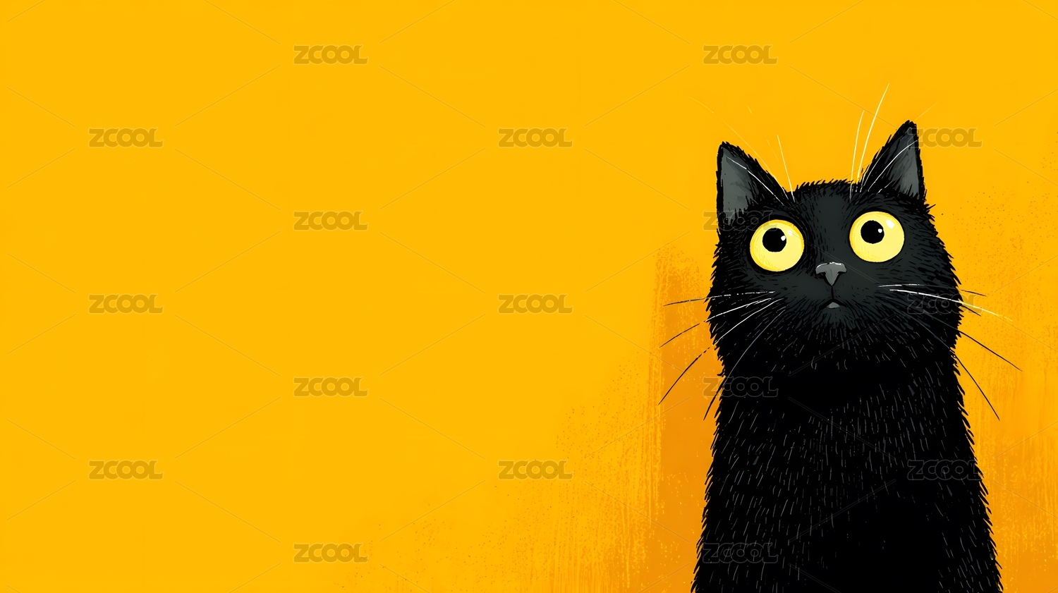 质感,背景,金黄,图片,黑猫,猫咪,动物,宠物,凝望,仰望
