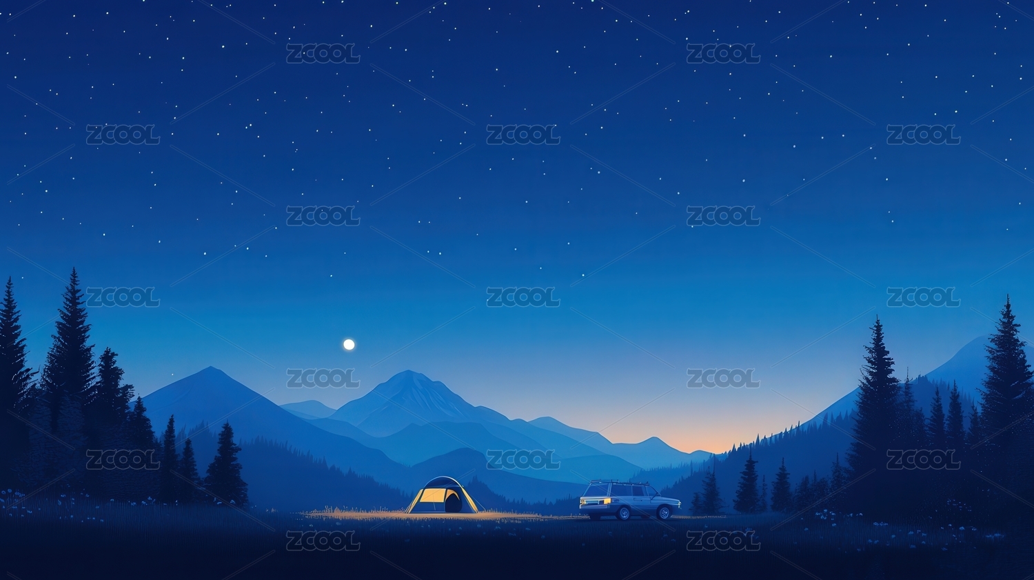 野外露营插画夜景
