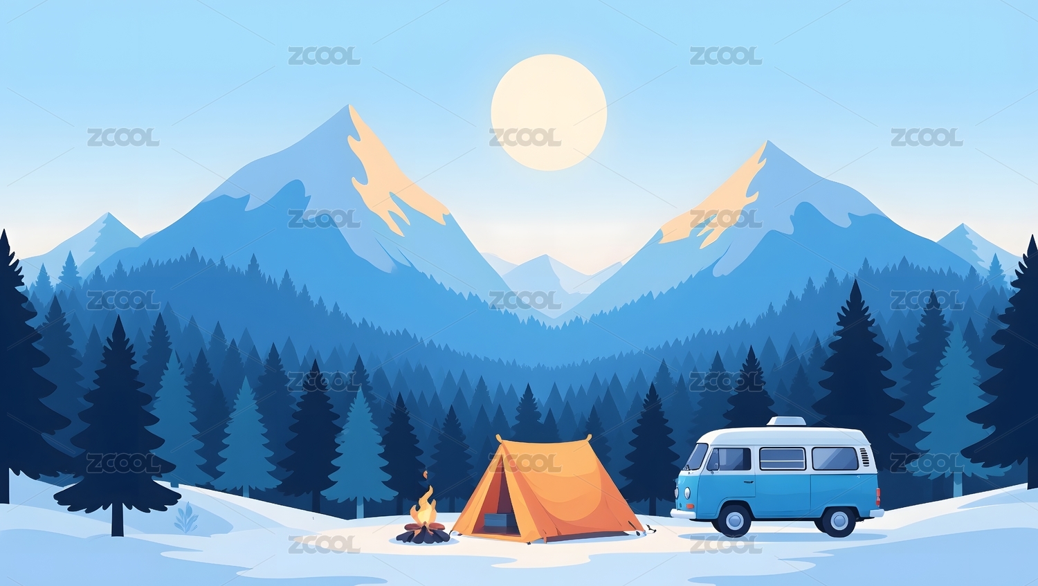 冬季雪山露营场景