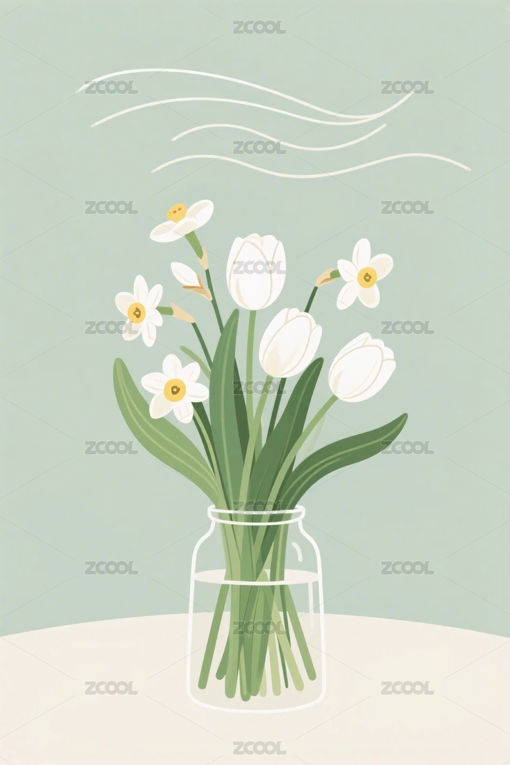 白色花瓶插鲜花插画