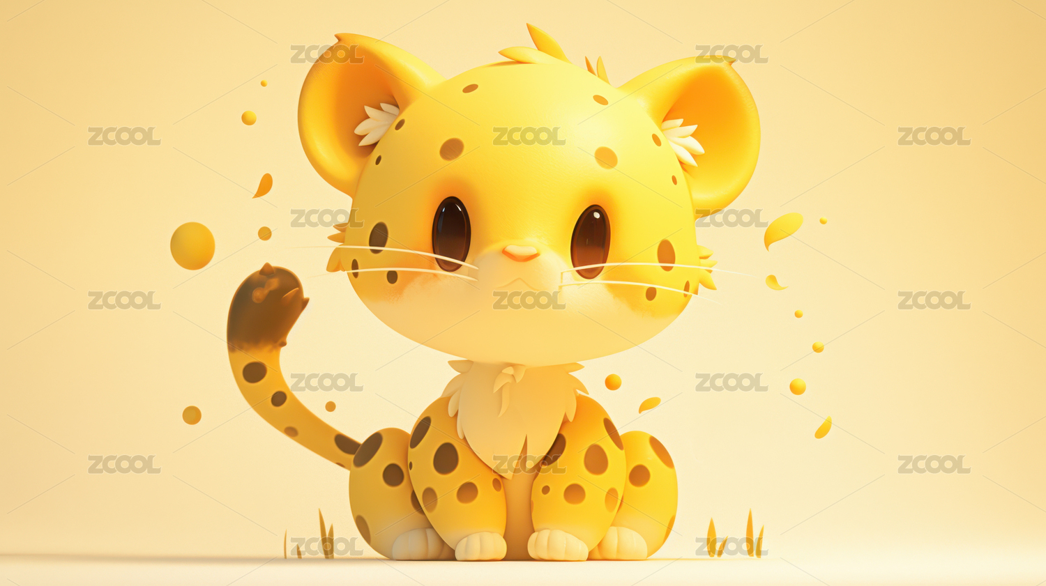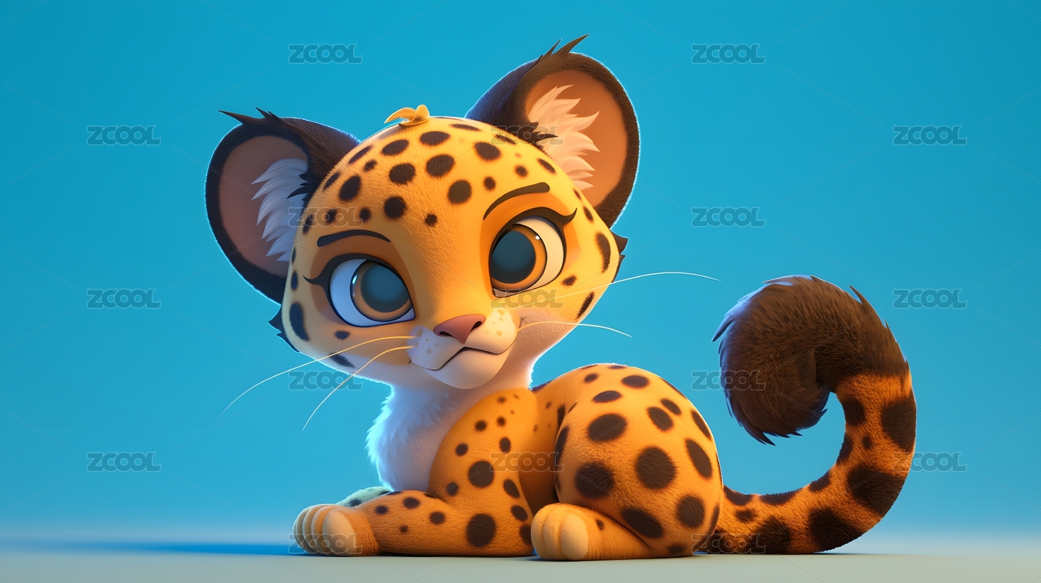 猎豹花豹可爱唯美野生动物3D卡通插画壁纸