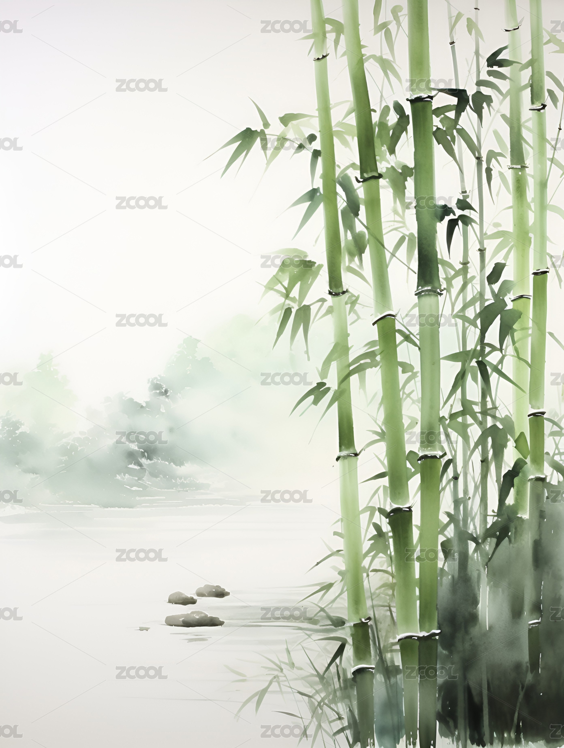 竹子,植物,叶子,清新,绿色,淡雅,水墨画,东方,中国画,水墨