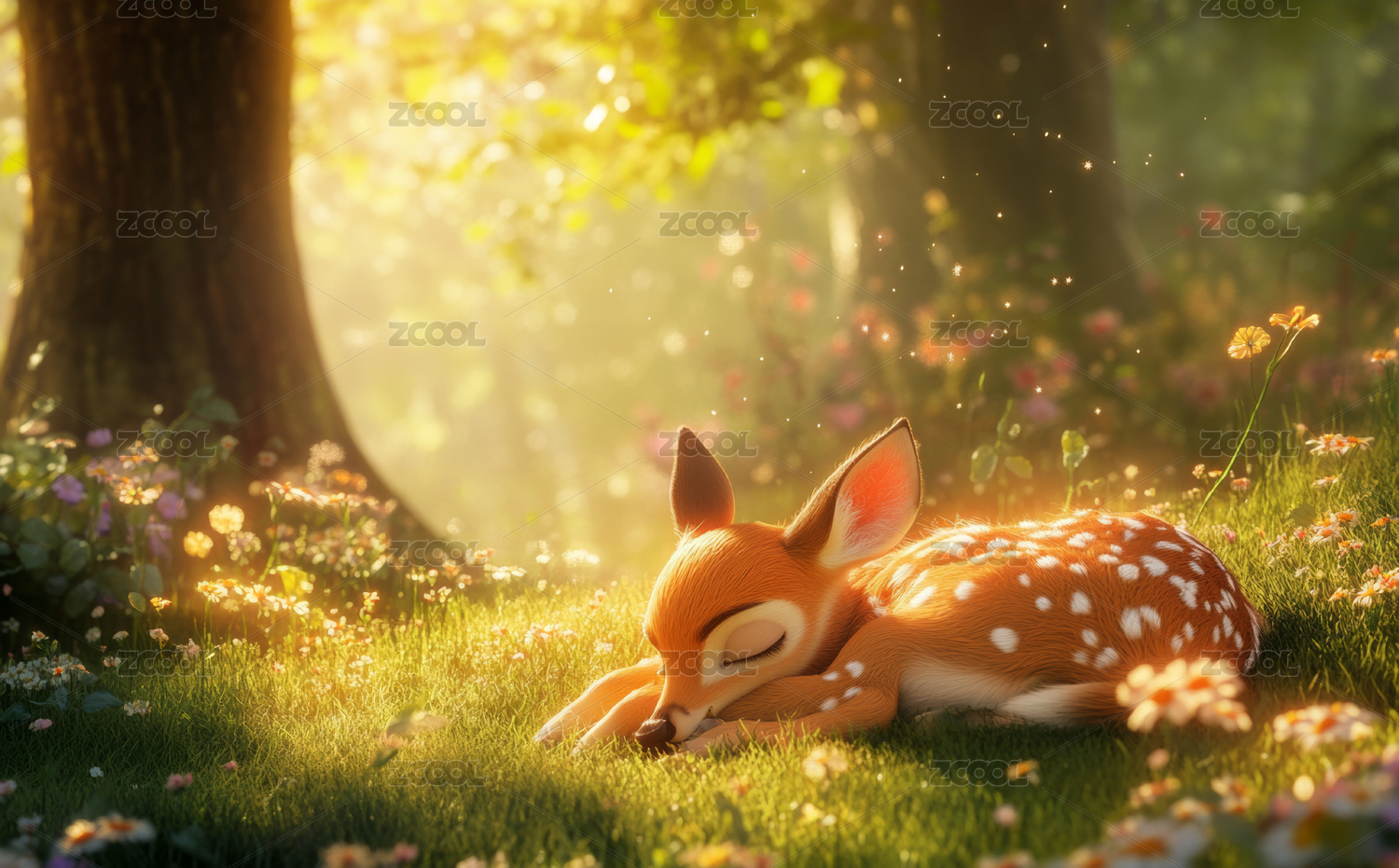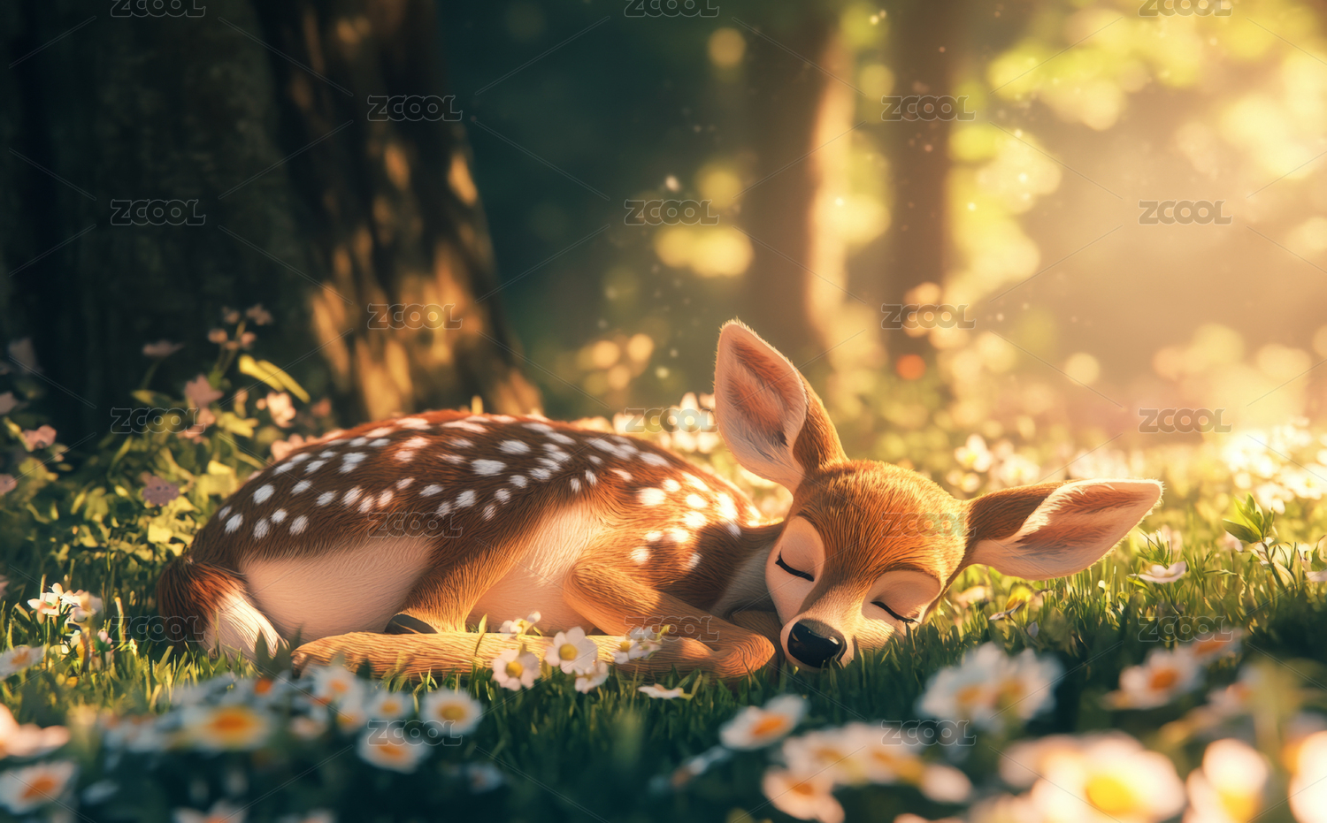 梅花鹿可爱唯美野生动物3D卡通插画壁纸